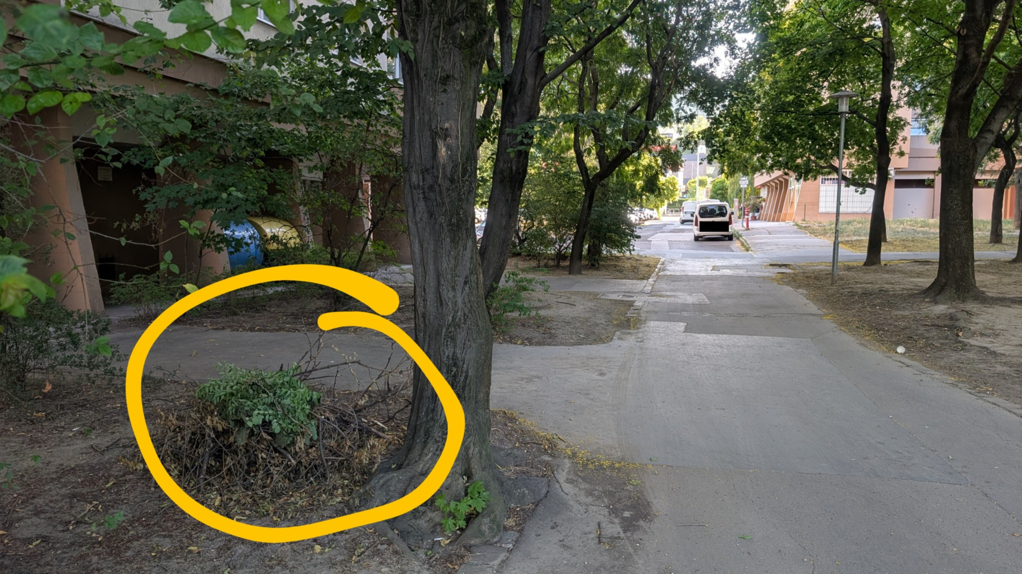 A Váradi utca 17. mellett több (zöld)hulladékkal kapcsolatos tennivaló van, ahogy a képeken látható.