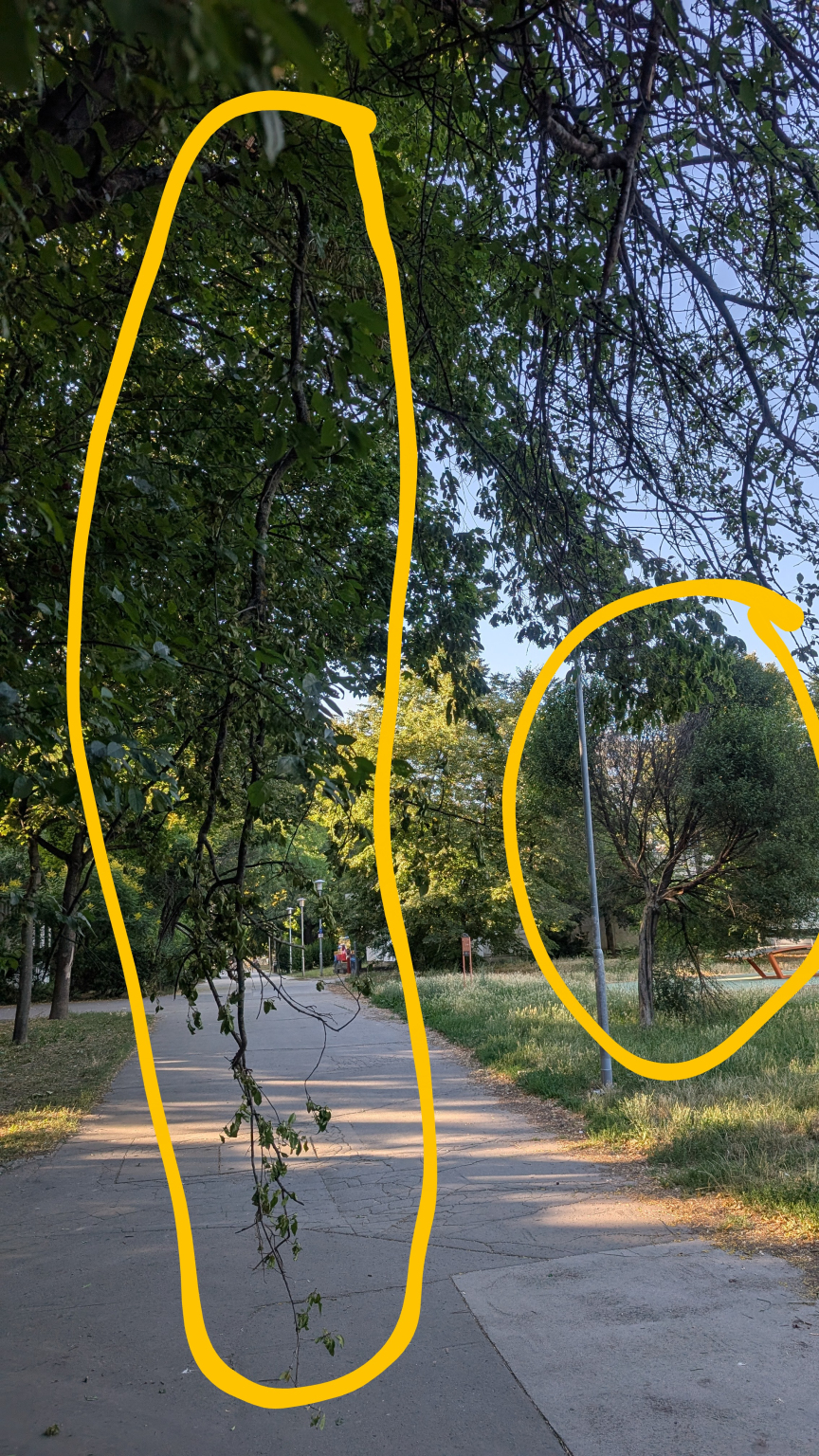 Letört ágak, zöldhulladék és szemét