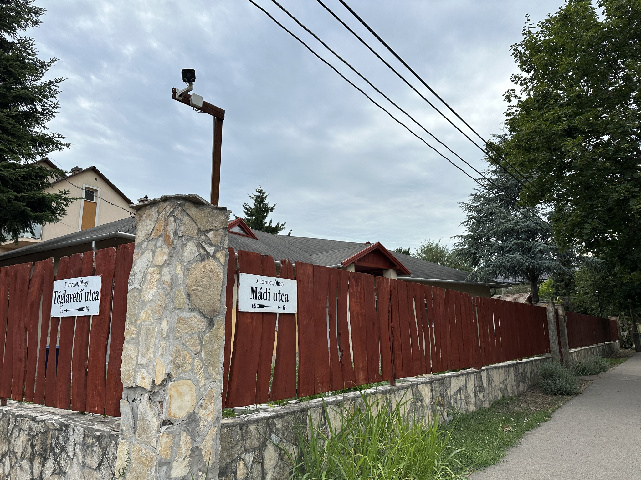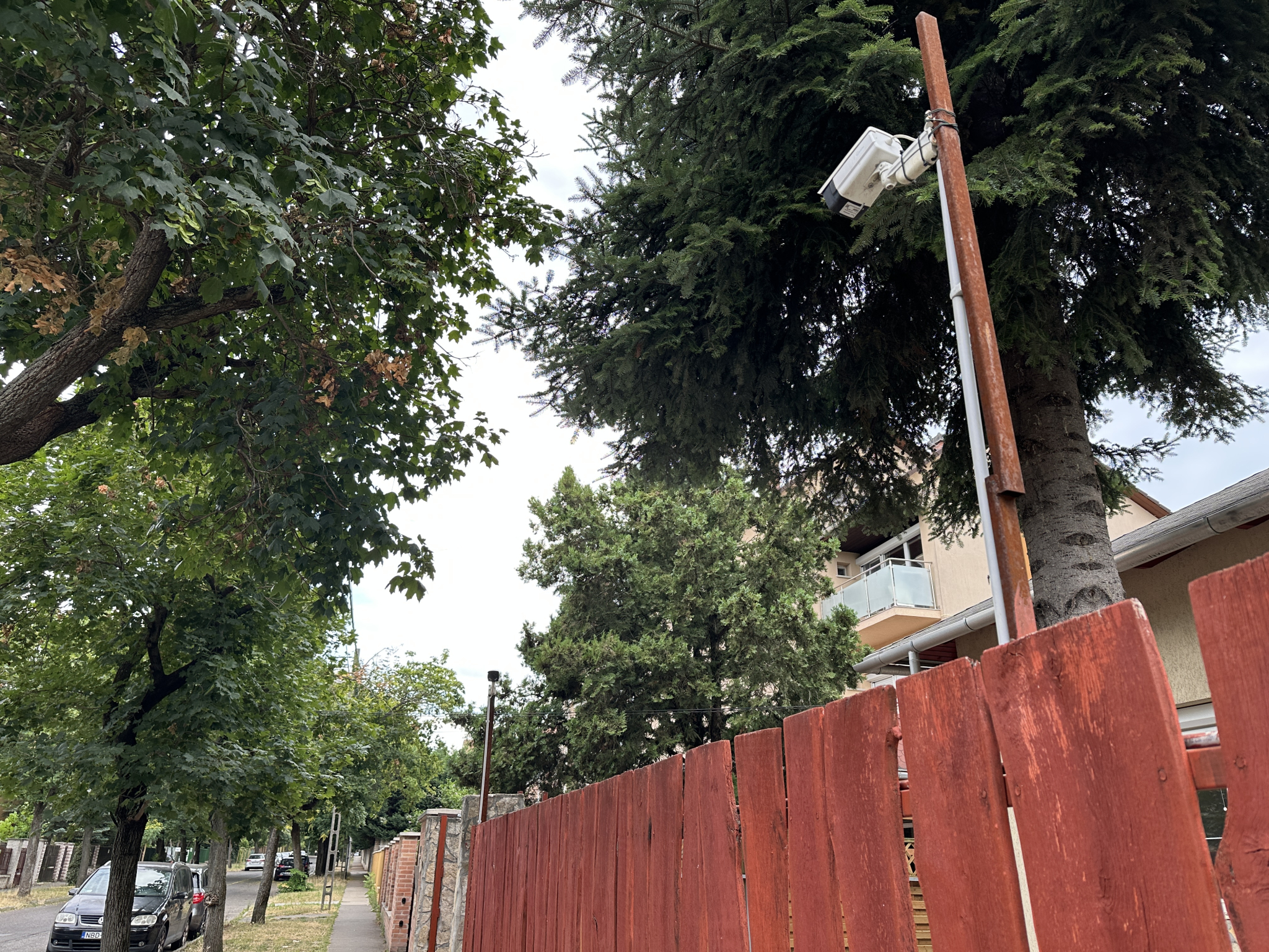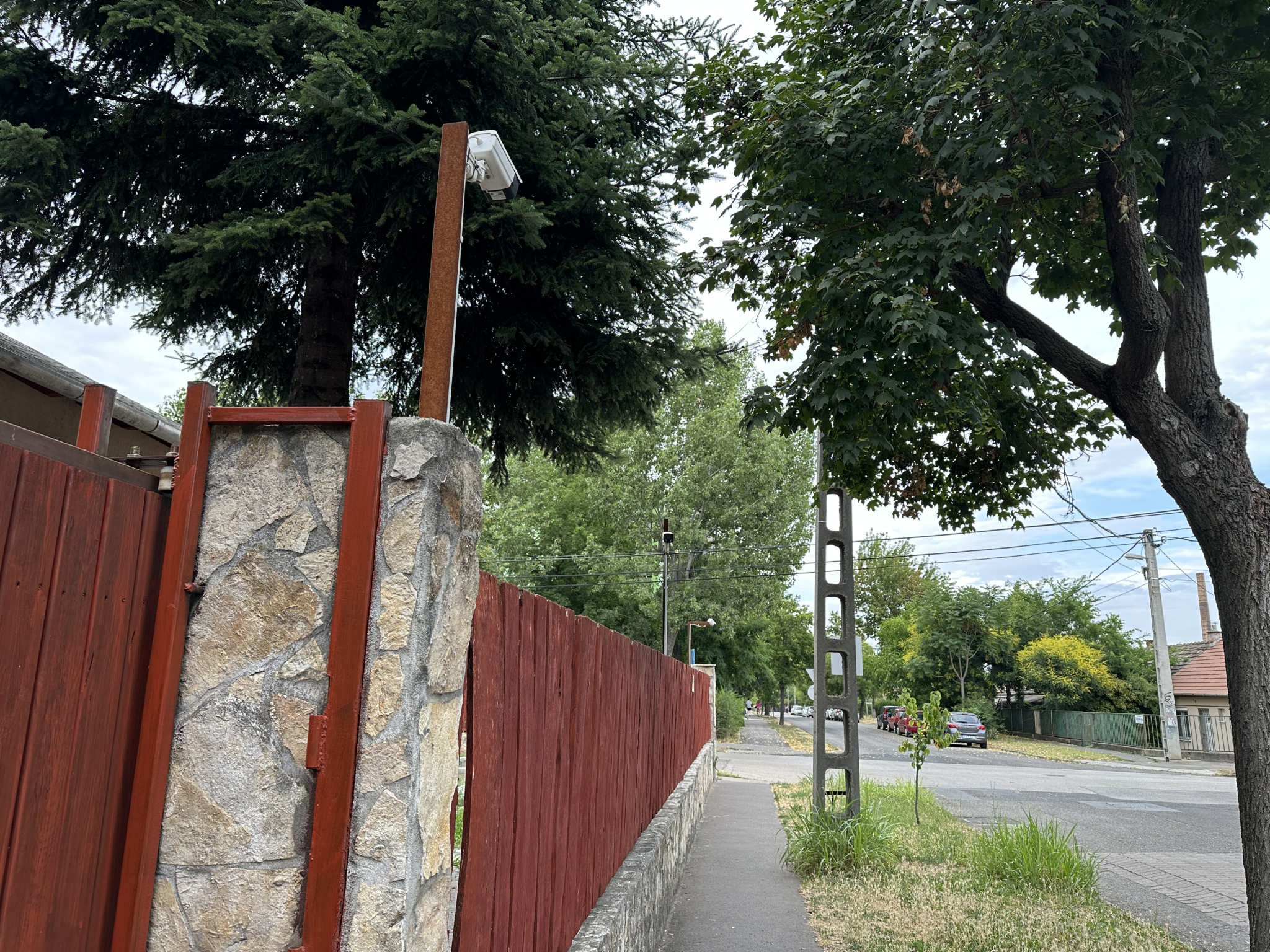 Magánház magán kamerája az utcát, járdát figyeli