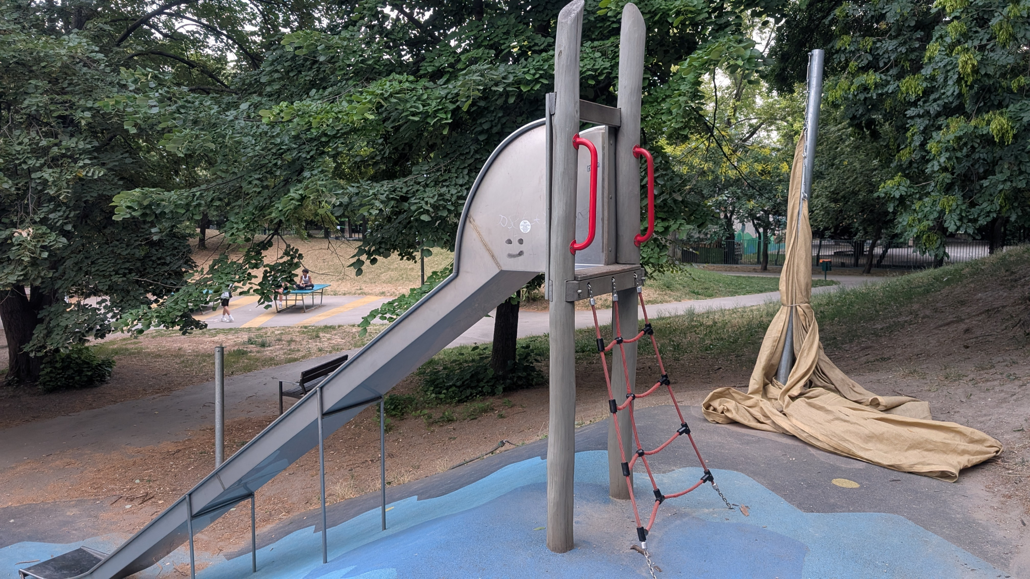 A Holdudvar park csúszdáknál leszakadt az egyik napvitorla.