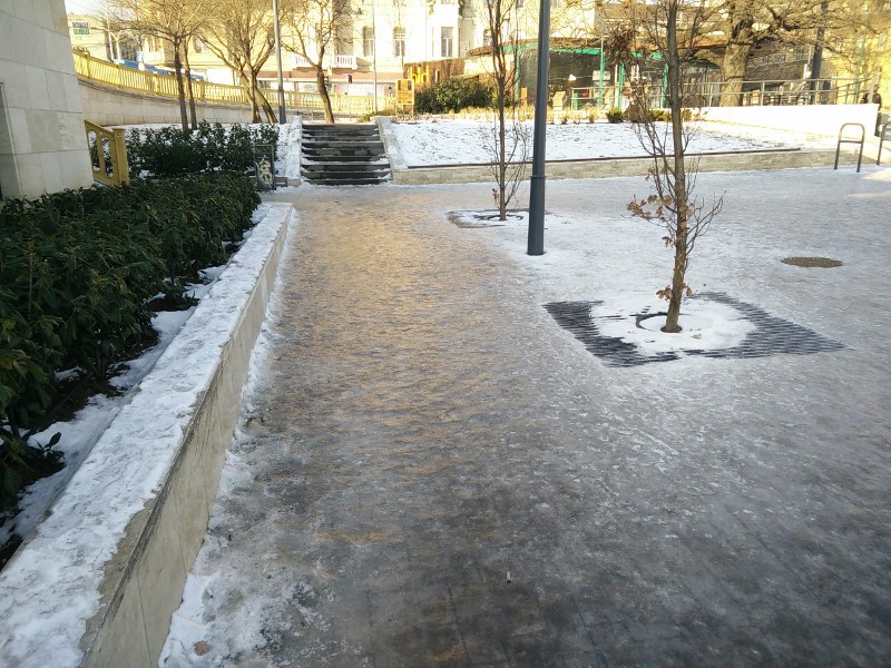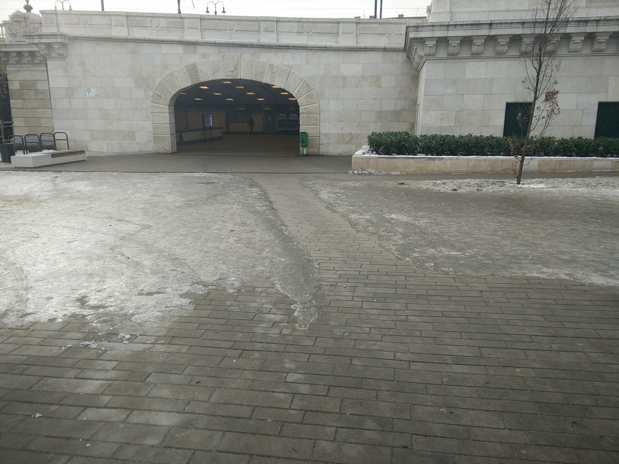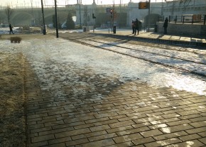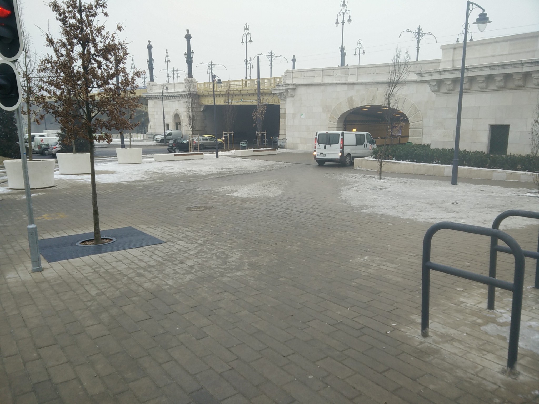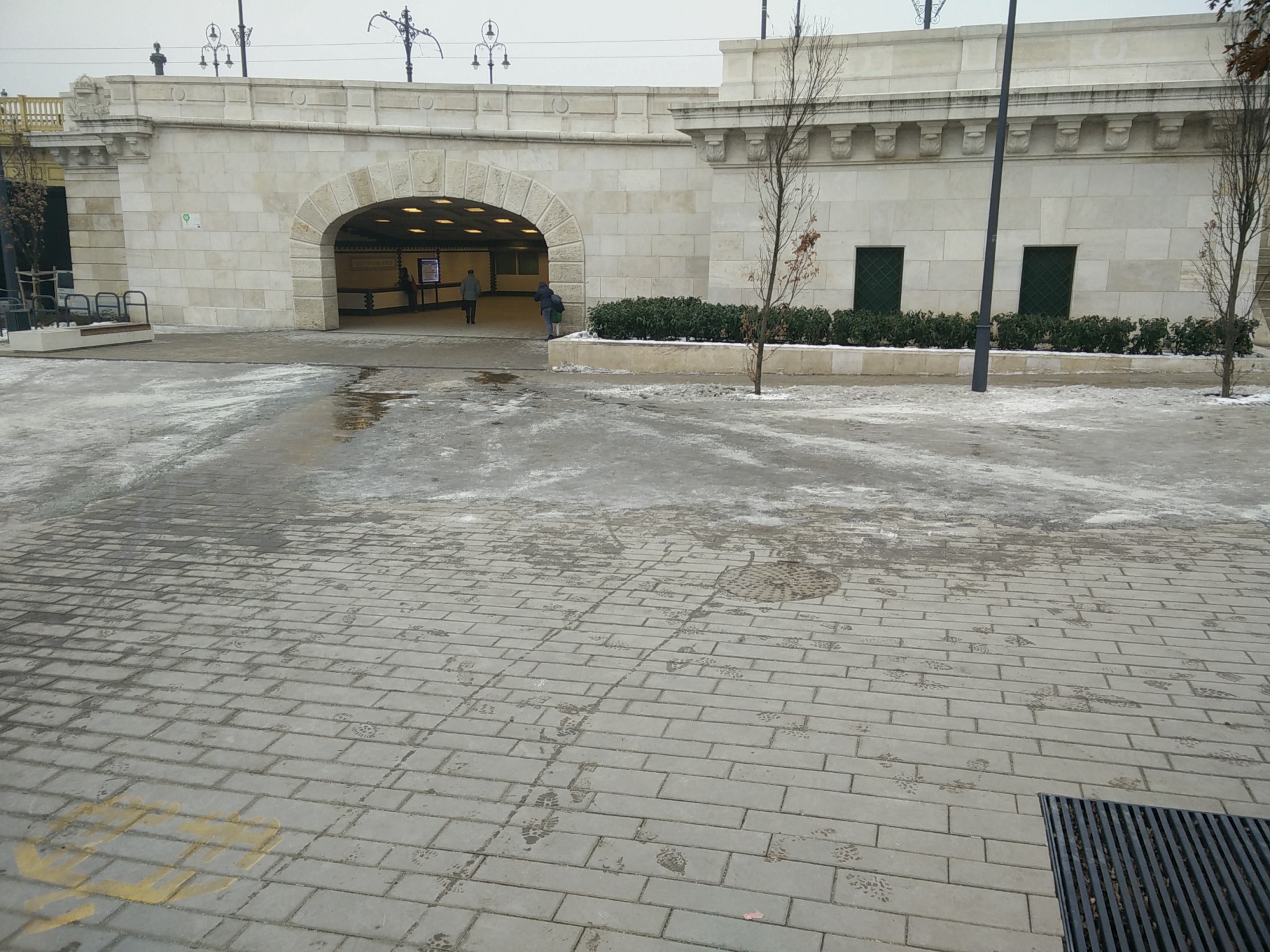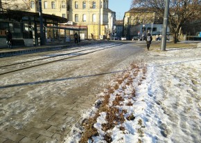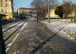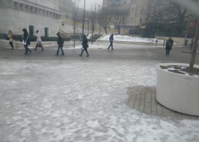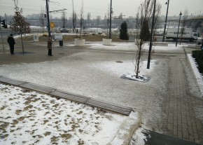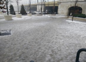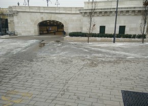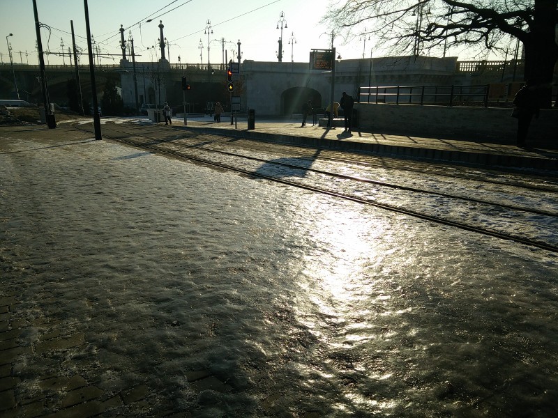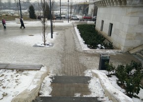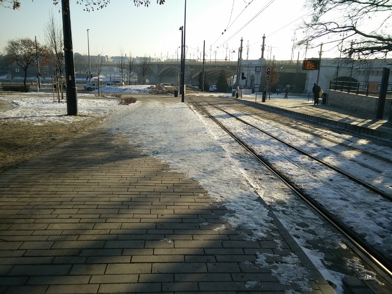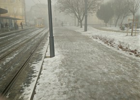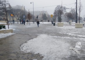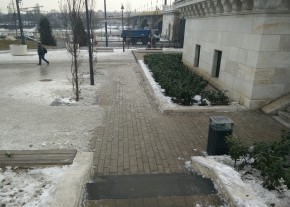A Budapest Margit hid budai hidfonel talahato 19-es villamosmegallonal a jarda tobb helyen nincs megfeleloen takaritva, ezert jeges, csuszos.