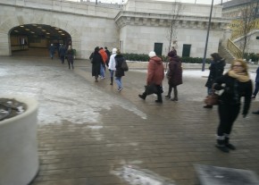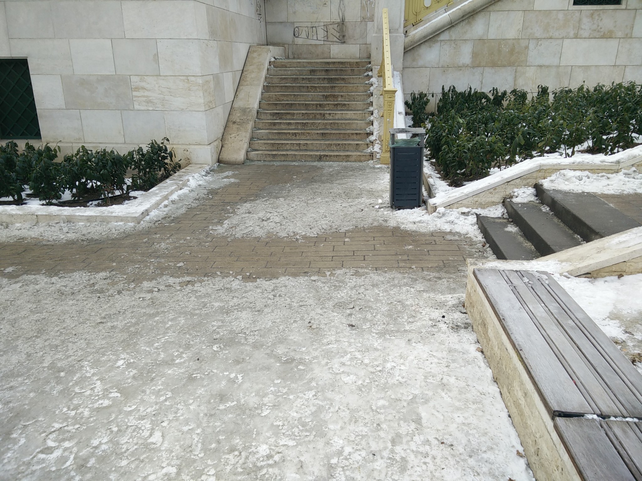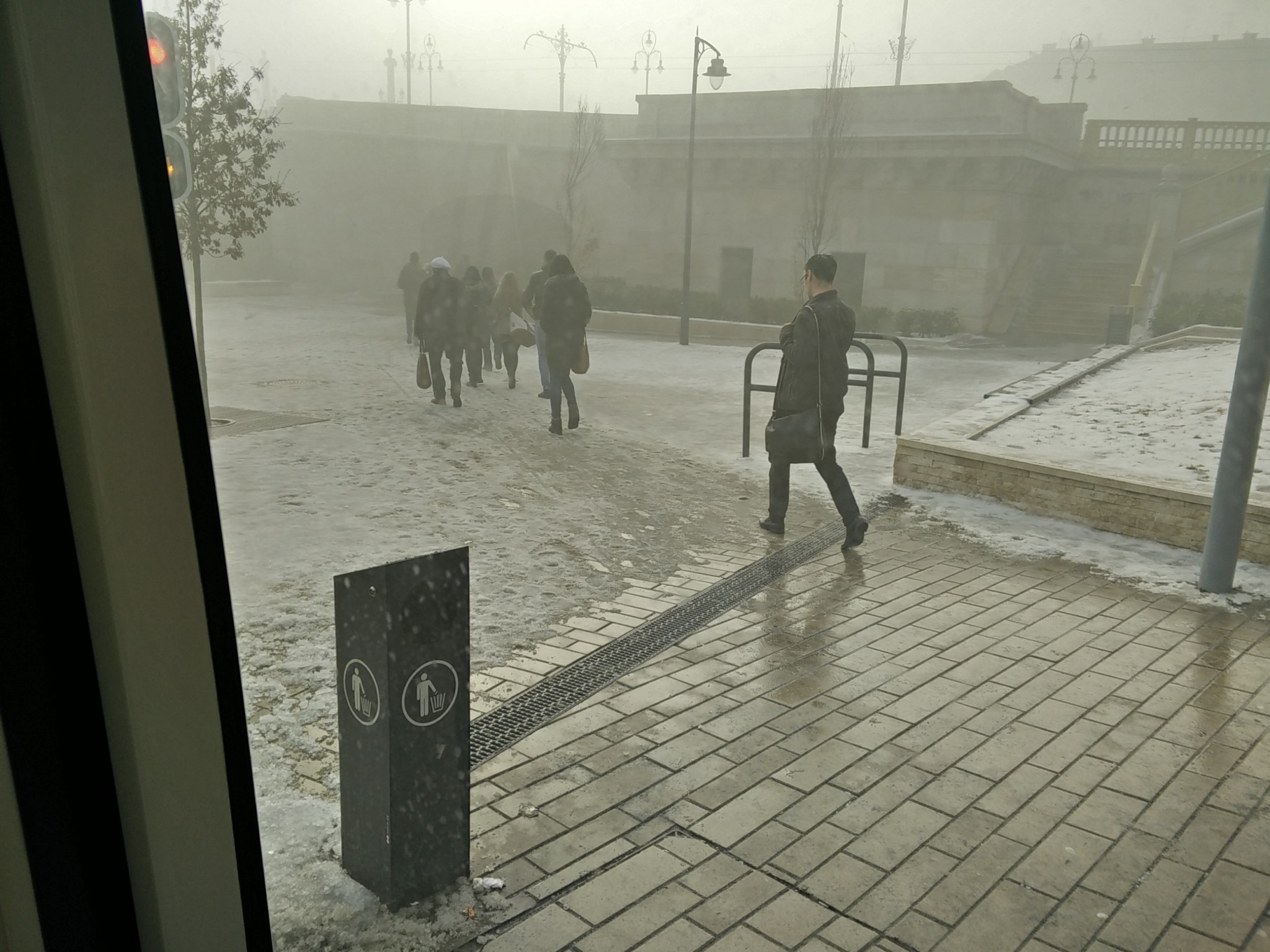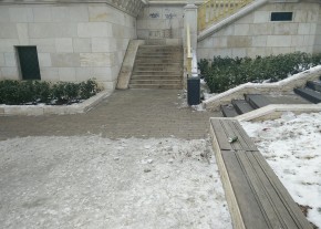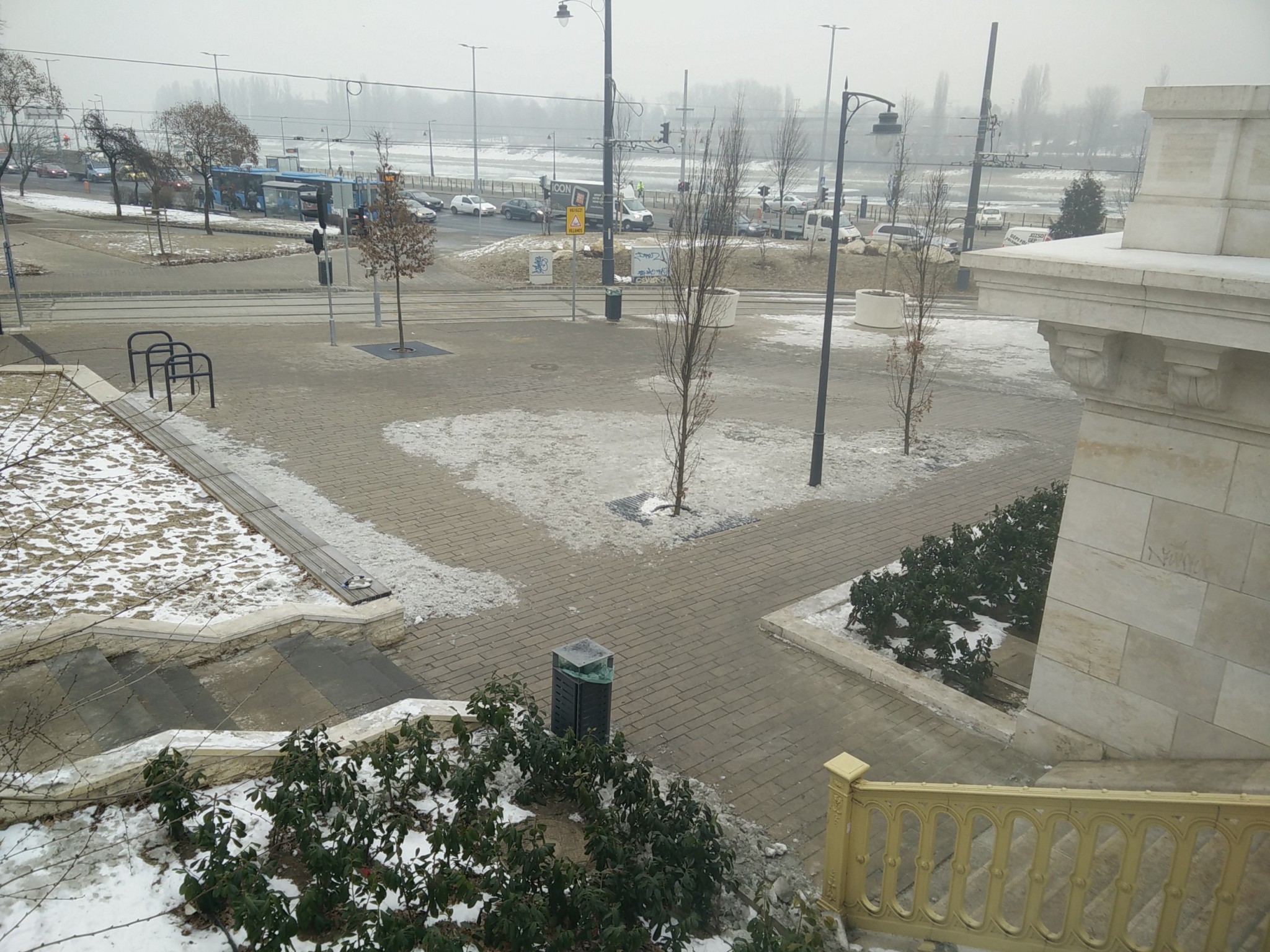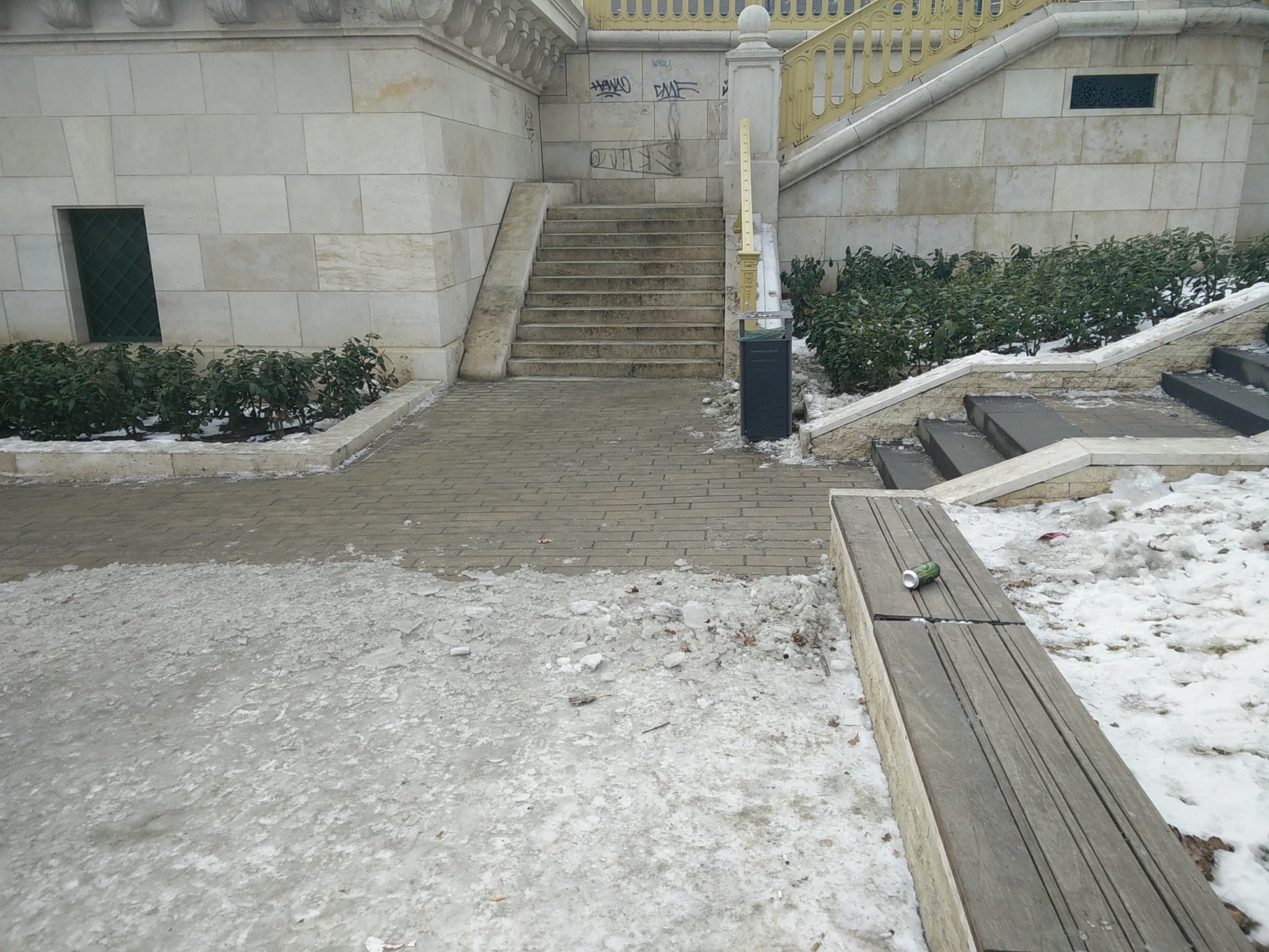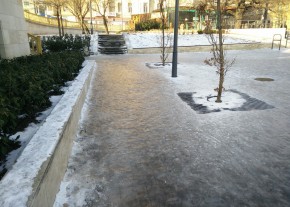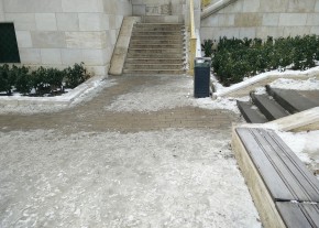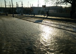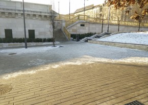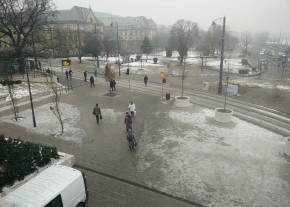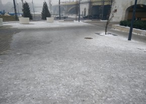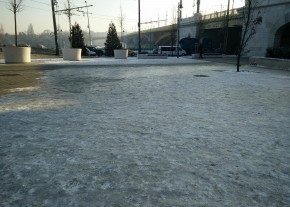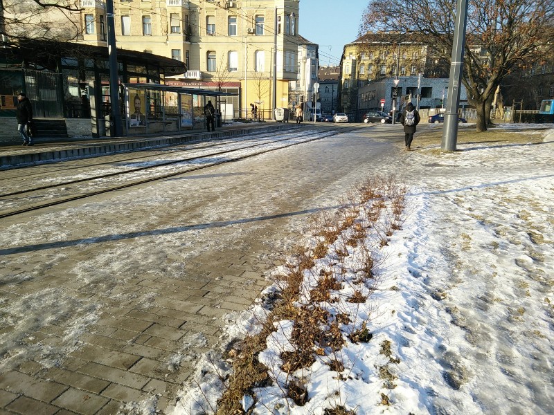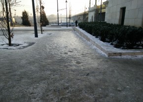 A Budapest Margit hid budai hidfonel talahato 19-es villamosmegallonal a jarda tobb helyen nincs megfeleloen takaritva, ezert jeges, csuszos.
