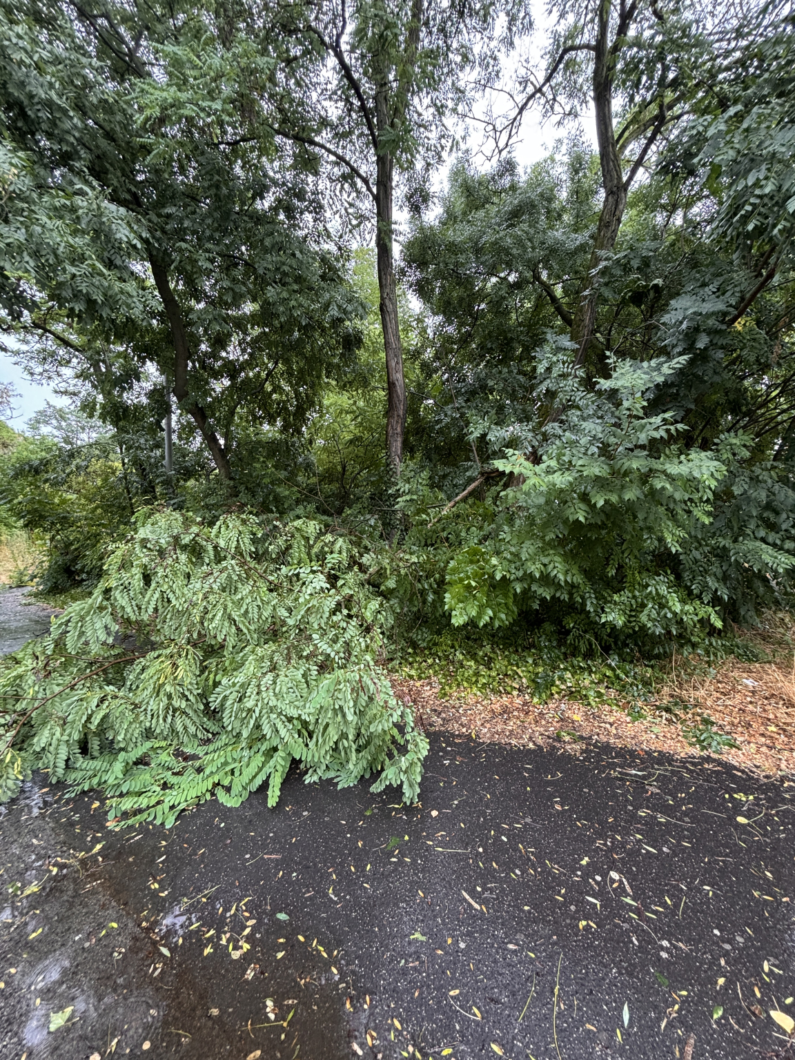 A faág amit a vihar a járdára döntött annak az eltávolítása.