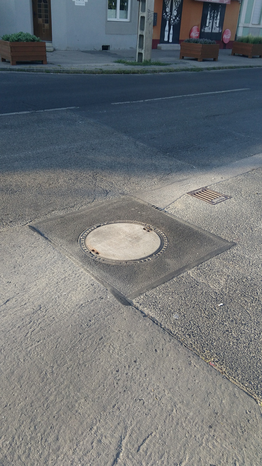 Szeretném kérni az illetékest, hogy a képen látható csatornafedelet az útburkolat síkjával egybe helyezni szíveskedjenek!