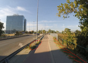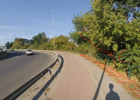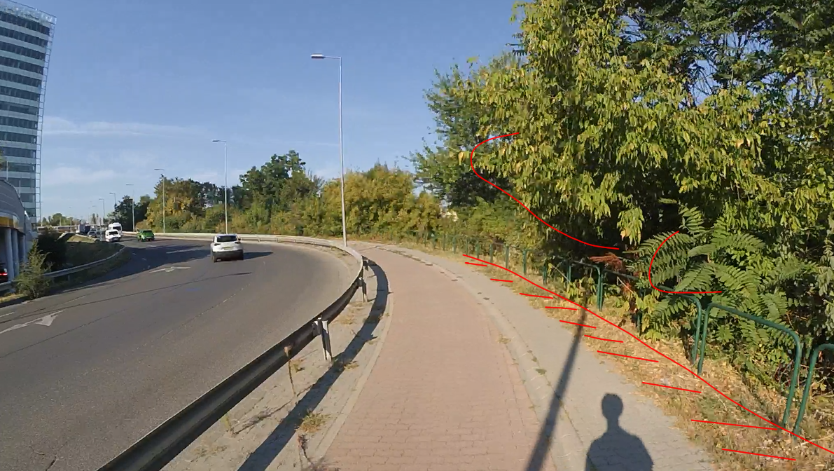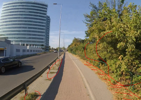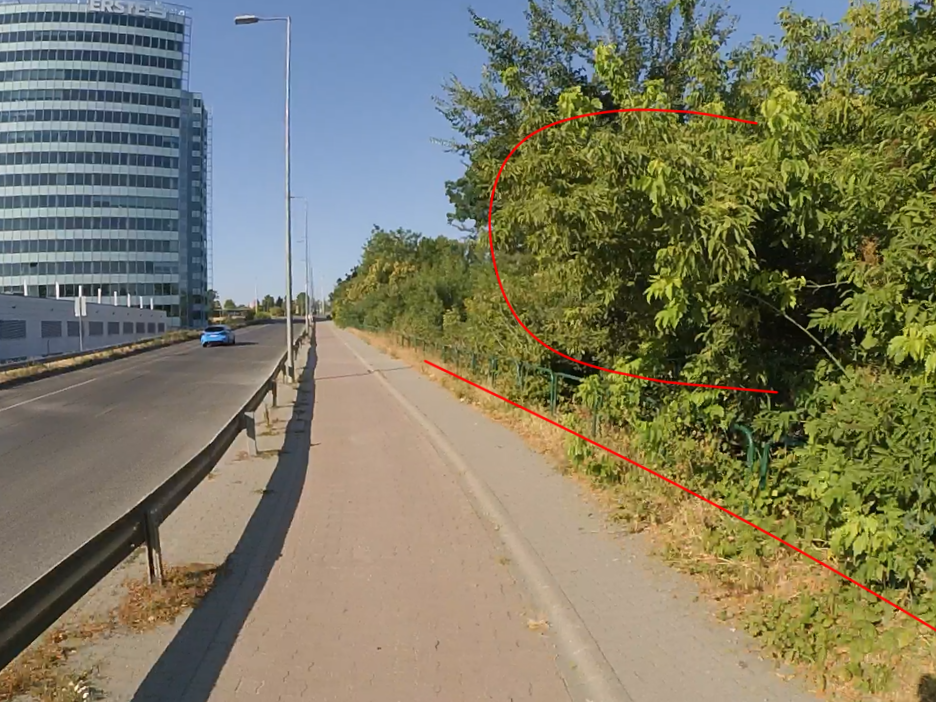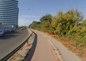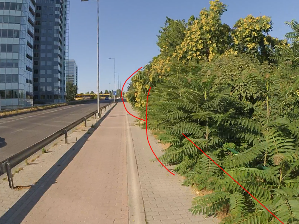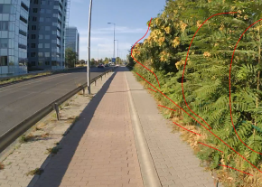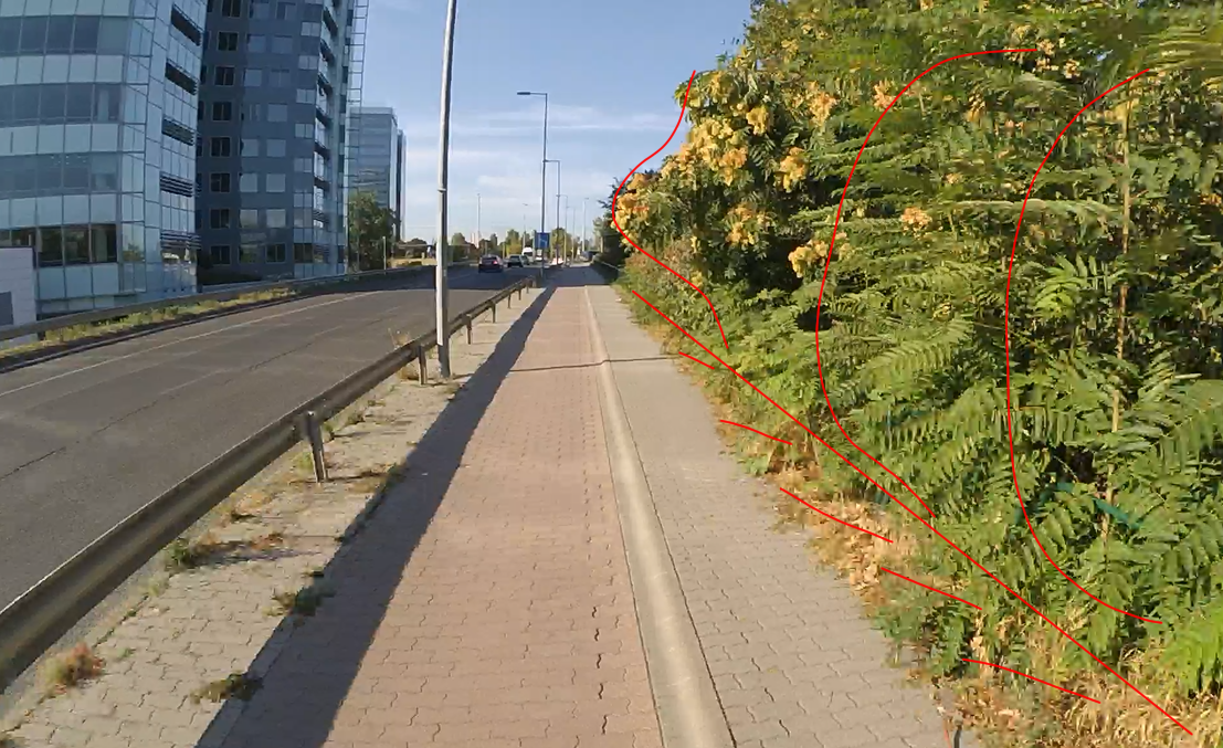 A járdára lógó ágak és gaz több helyen elérték a kerékpárutat, ezzel a járda teljes szélességében használhatatlanná vált.