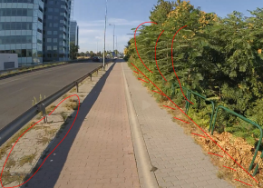 További probléma, hogy közvetlen a járda mellett ecetfák nőnek. Rendszeres kaszálás mellett nem erősödne meg a gyökerük, de így előbb utóbb fel fogják nyomni a burkolatot. Várhatóan azt sem fogják azonnal javítani, így a mostani hanyagsággal akár 10 évre tönkretehetik a járdát.