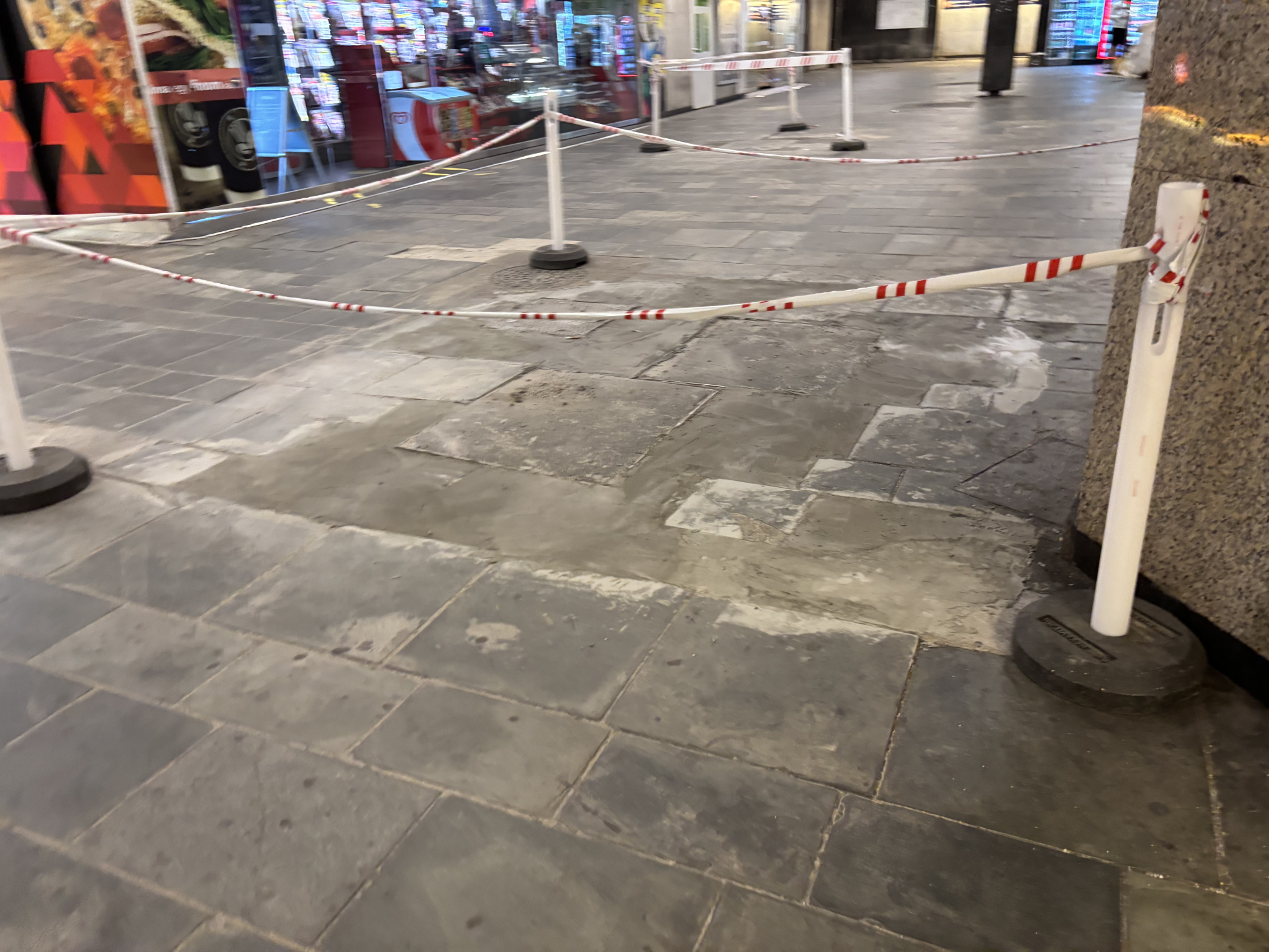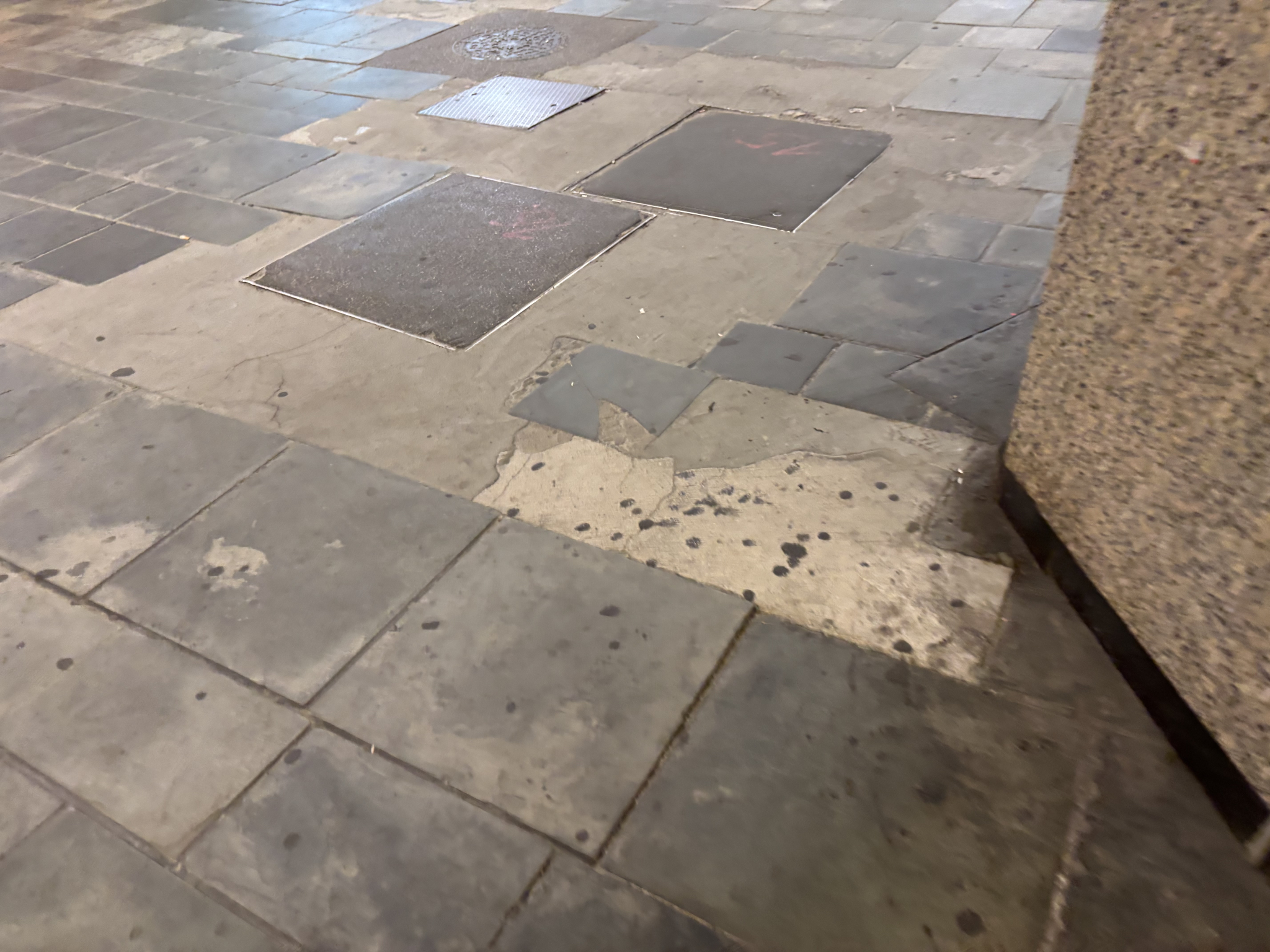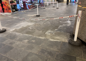 Déli pályaudvar M2 metró bejárata előtt hosszú ideje balesetveszélyes és hiányos a padló, amiben könnyen elbotlik, aki siet vagy nem figyel. Kontár és hanyag burkolat egy rendkívül forgalmas helyen.