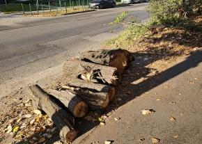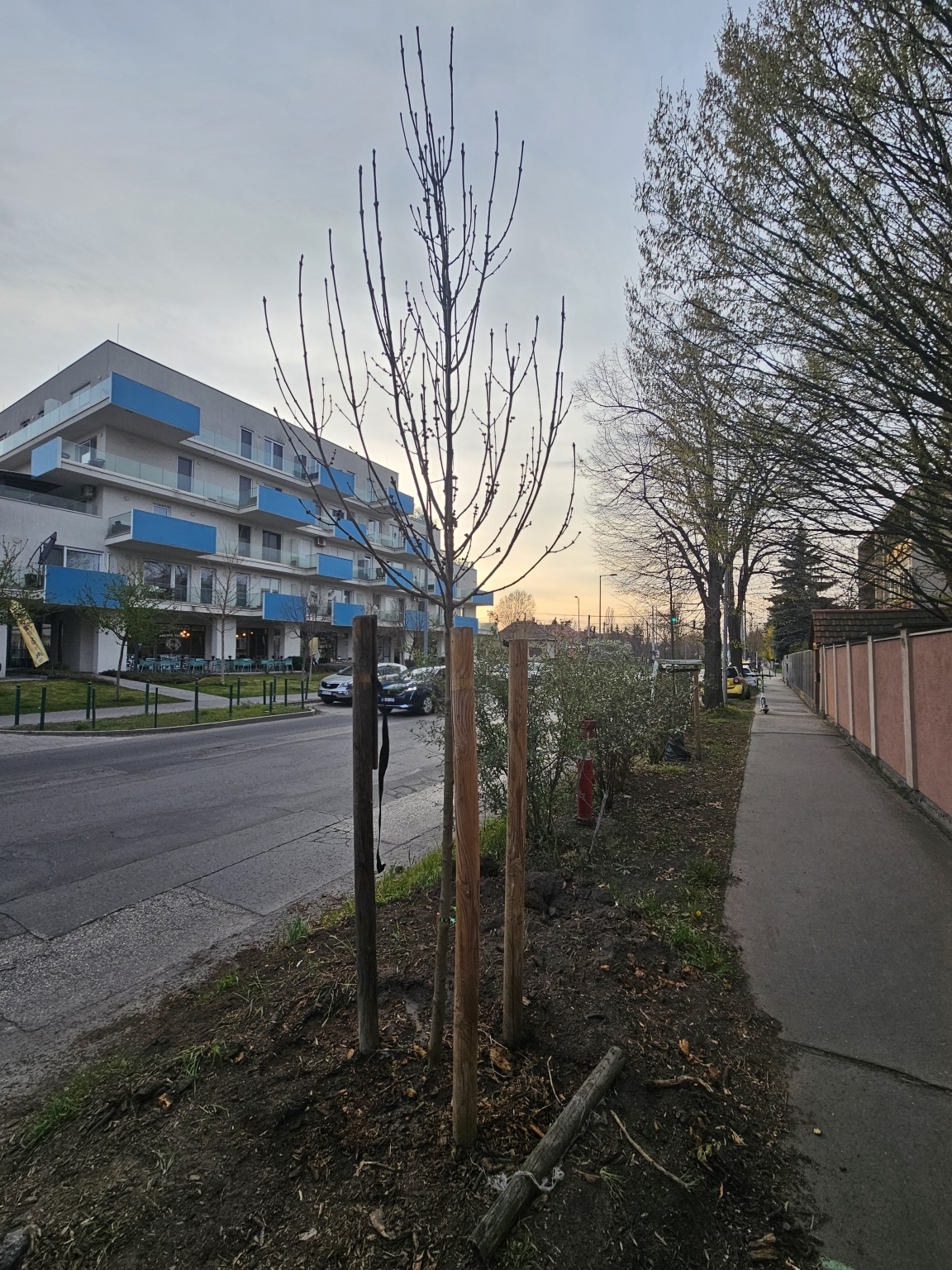 14. kerület, Miskolcu út 65. elötti egyik hársfa több mint egy éve kiszáradt.
