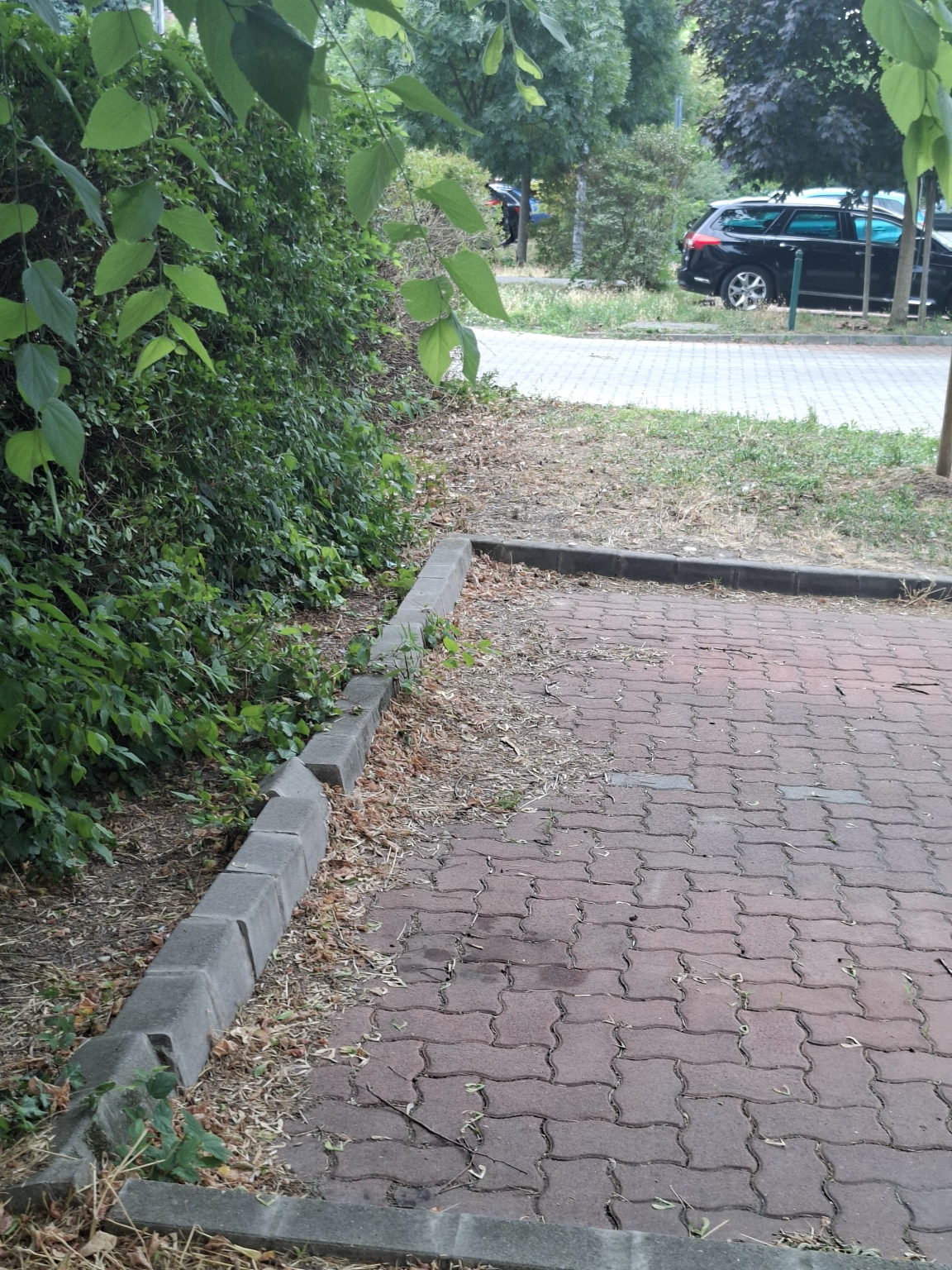 A teret és parkolókat határoló betonszegélyek környezete nagyon gazos, idén nem végeztek gazolási munkálatokat.