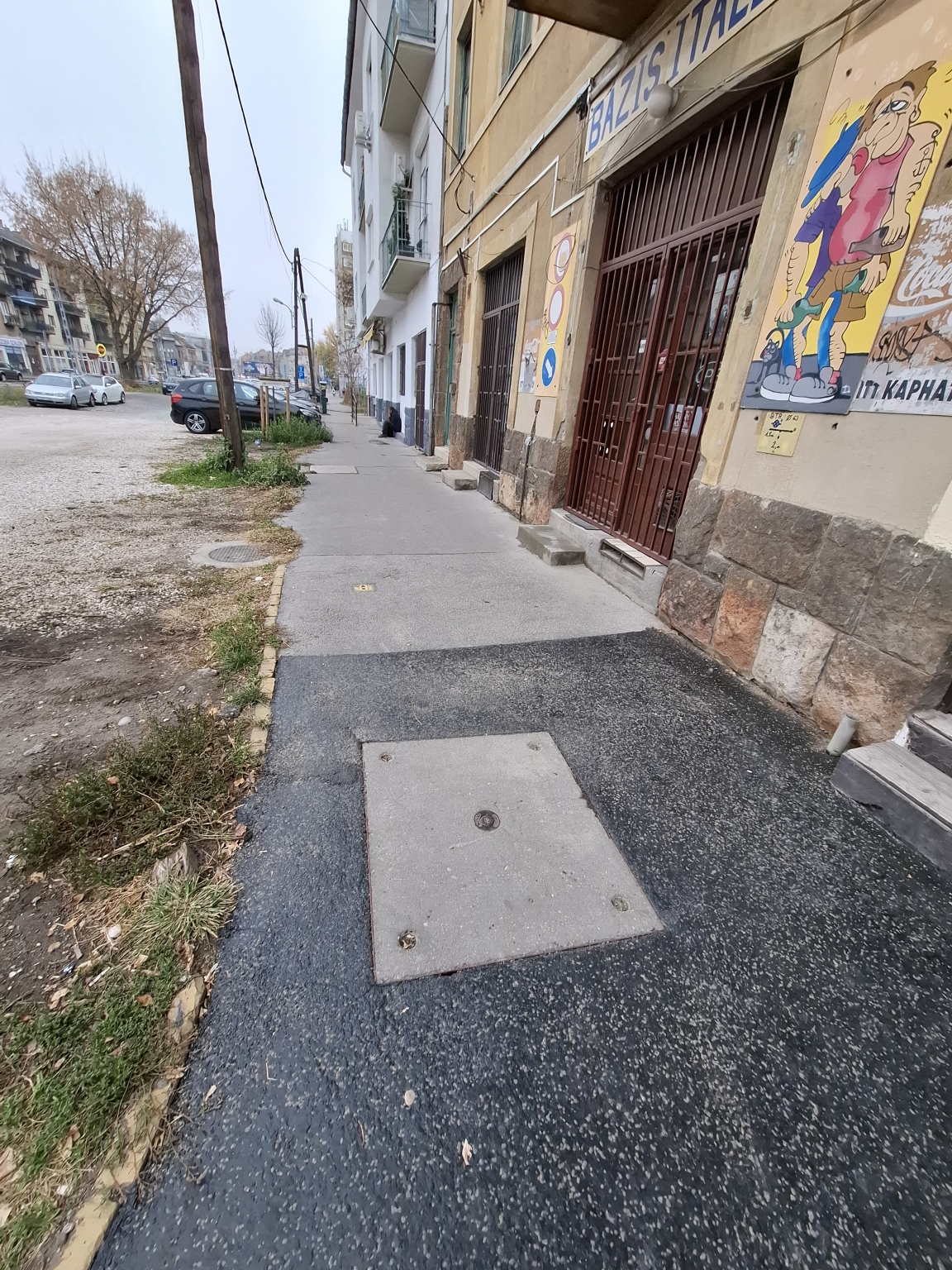 A fedlapot a közelmúltban felnyitották, de annyira megette a rozsda a keretét és a foflalatát, hogy nem is tudták visszahelyezni úgy, hogy a járda síkjában legyen. Így botlásveszélyes és billeg is. Kérem újítsák fel az aknát.