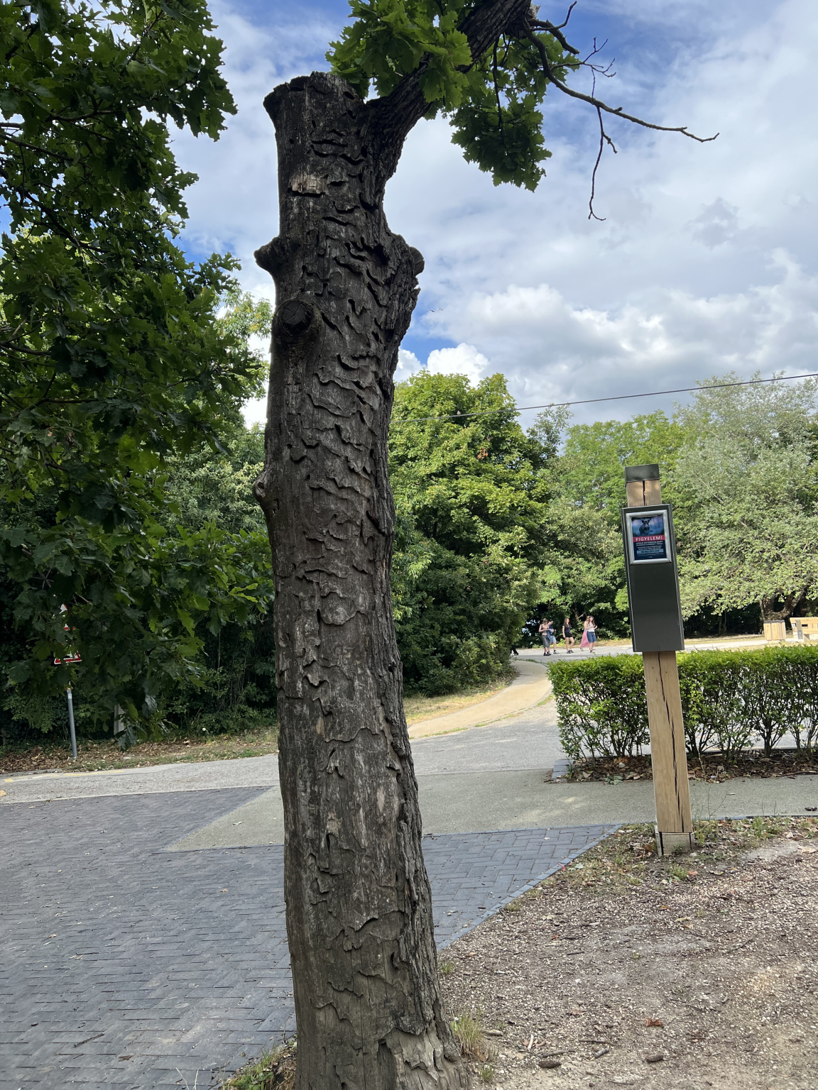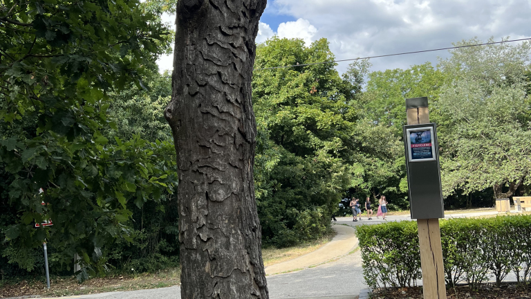A János-hegyen, a libegő felső állomásánál található játszótéren a korhadt fában darazsak fészkelnek.