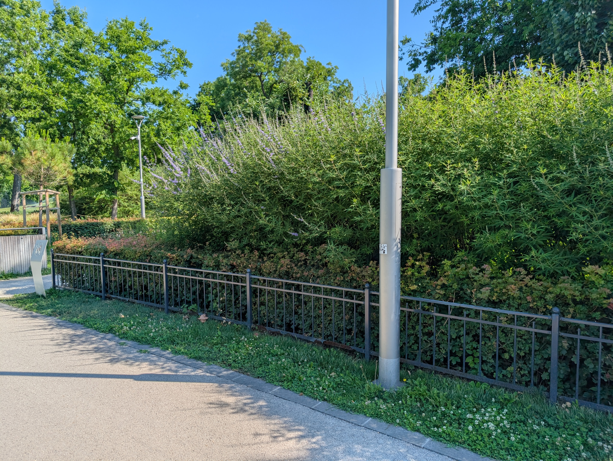 A piknik kert kerítése egyre több helyen rozsdásodik. A képek a nagy játszótér felőli oldalán készültek.