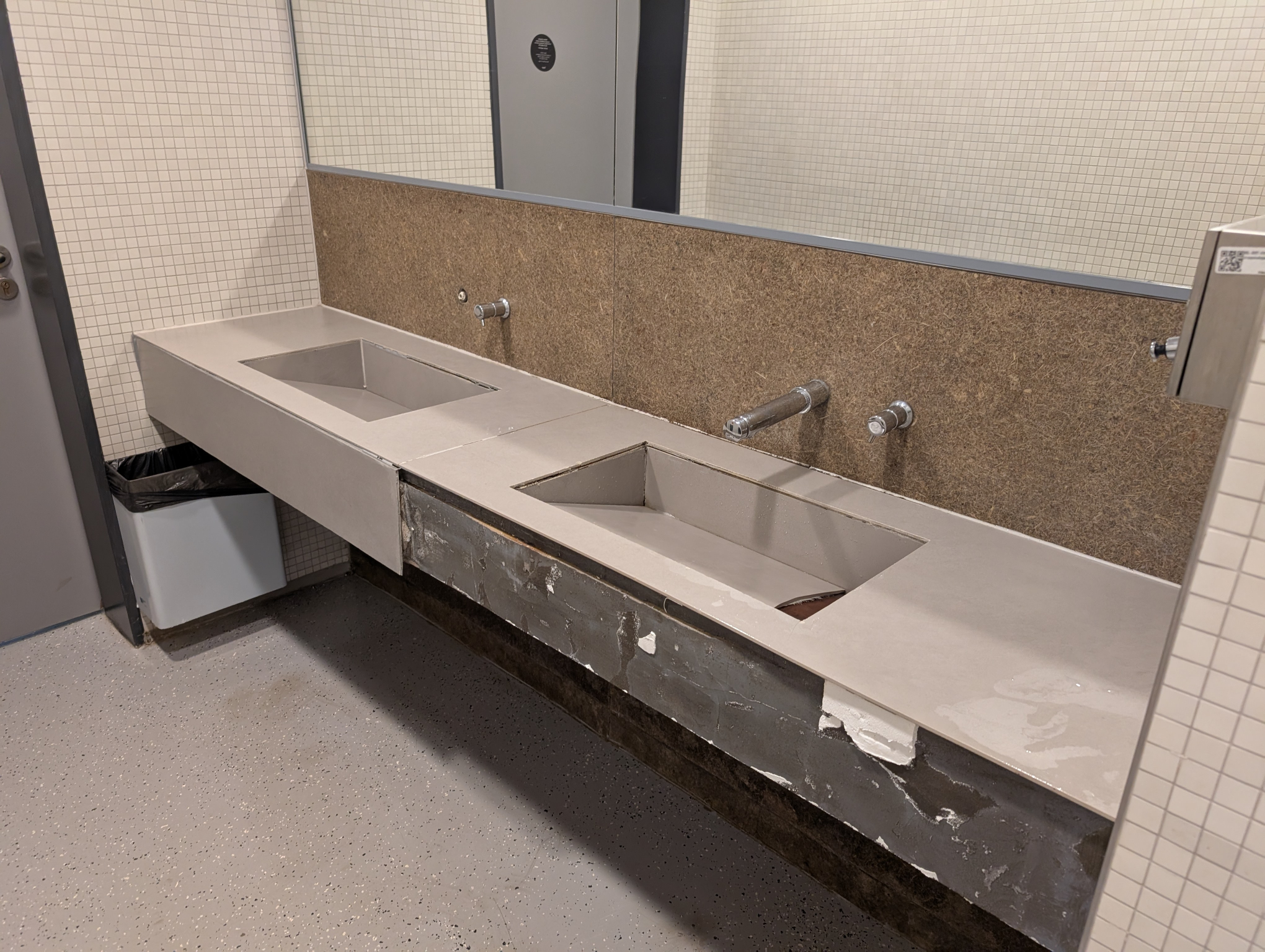 A vakok kertje és a kresz park között lévő férfi mosdó sérült, pár elem hiányzik, törött. Az egyik csap hiányzik.