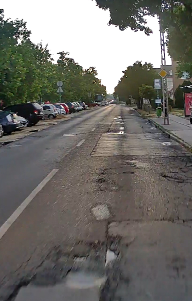 Eső esetén a járda használhatatlan, emellett szembe sávban kell kikerülni.