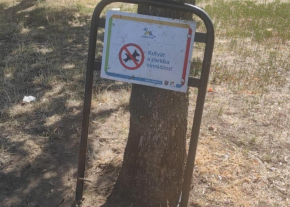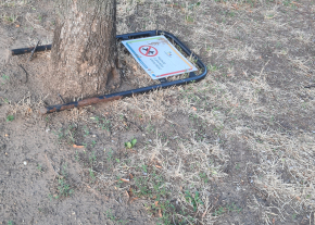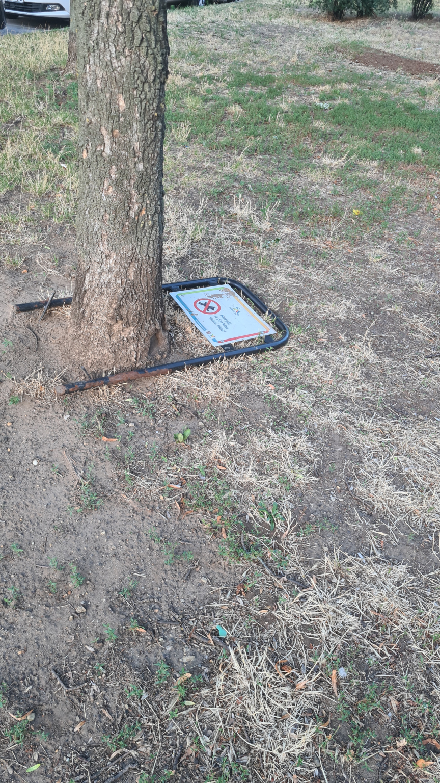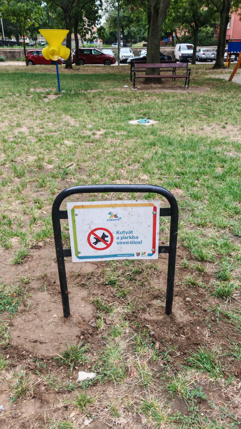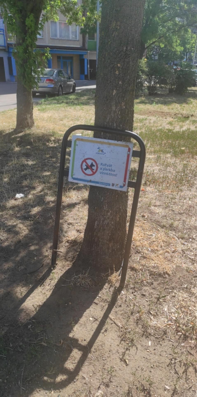 Ezúton szeretném jelezni, hogy a X. kerületben, az Agyagfejtő utca melletti járda mentén (Szövőszék utca 6 hátsóbejárata felé), egy fa tövében (a park és egy társasház közvetlen közelében) már hetek óta ott hever egy „Kutyát a parkba vinni tilos” feliratú tábla. Feltehetően valaki a közelből hozta el, és hanyagul ledobta a földre.