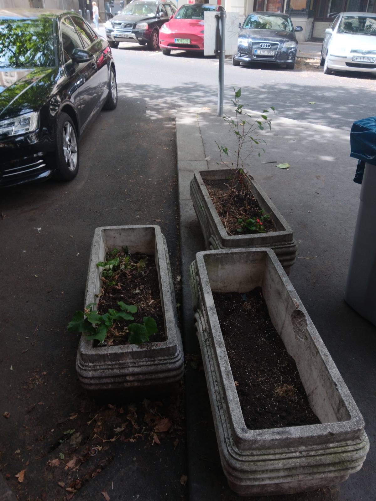 Szemetes virágláda a Belváros-Lipótváros egyik irodája elött .