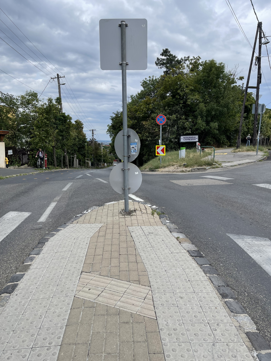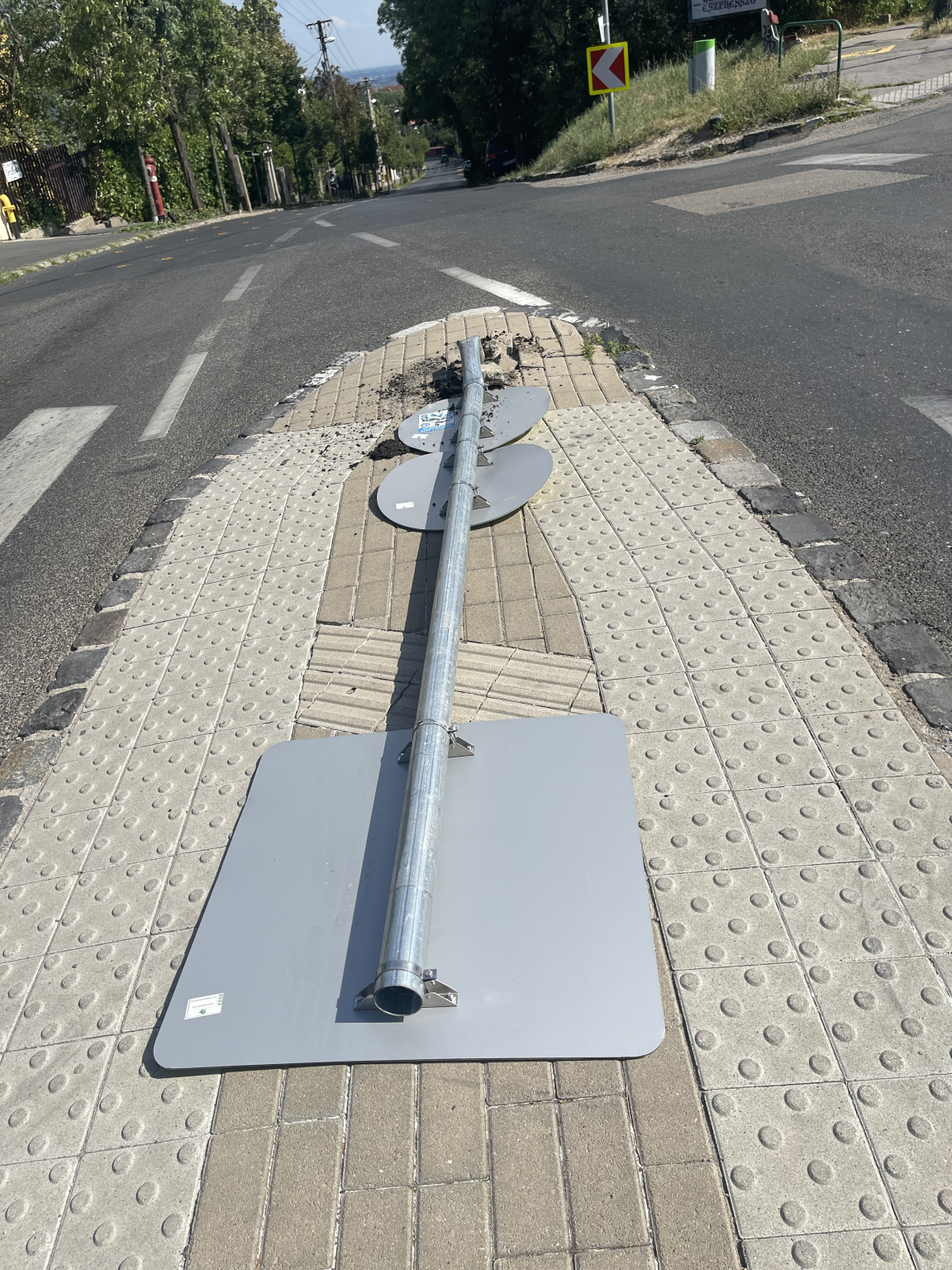 A Fodor-Mártonhegyi-Tornalja kereszteződés majomszigeten lévő jelzőtáblát kidöntötte egy autó.