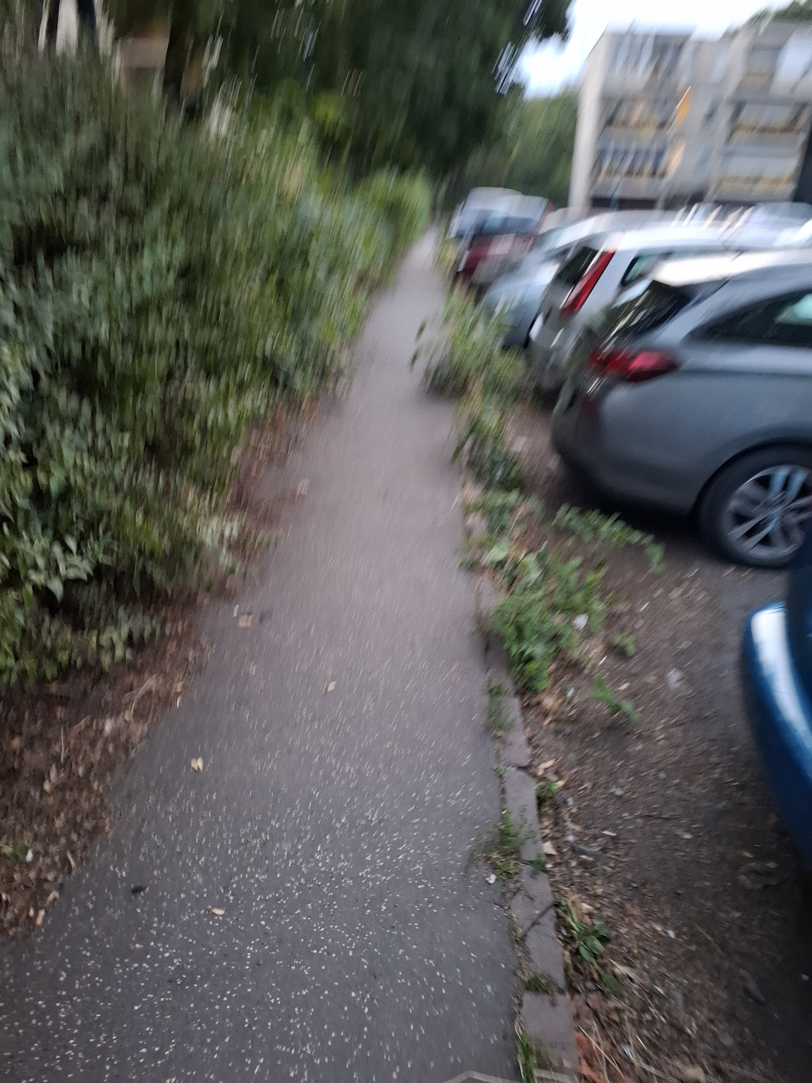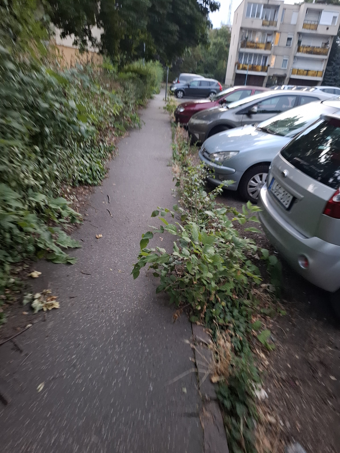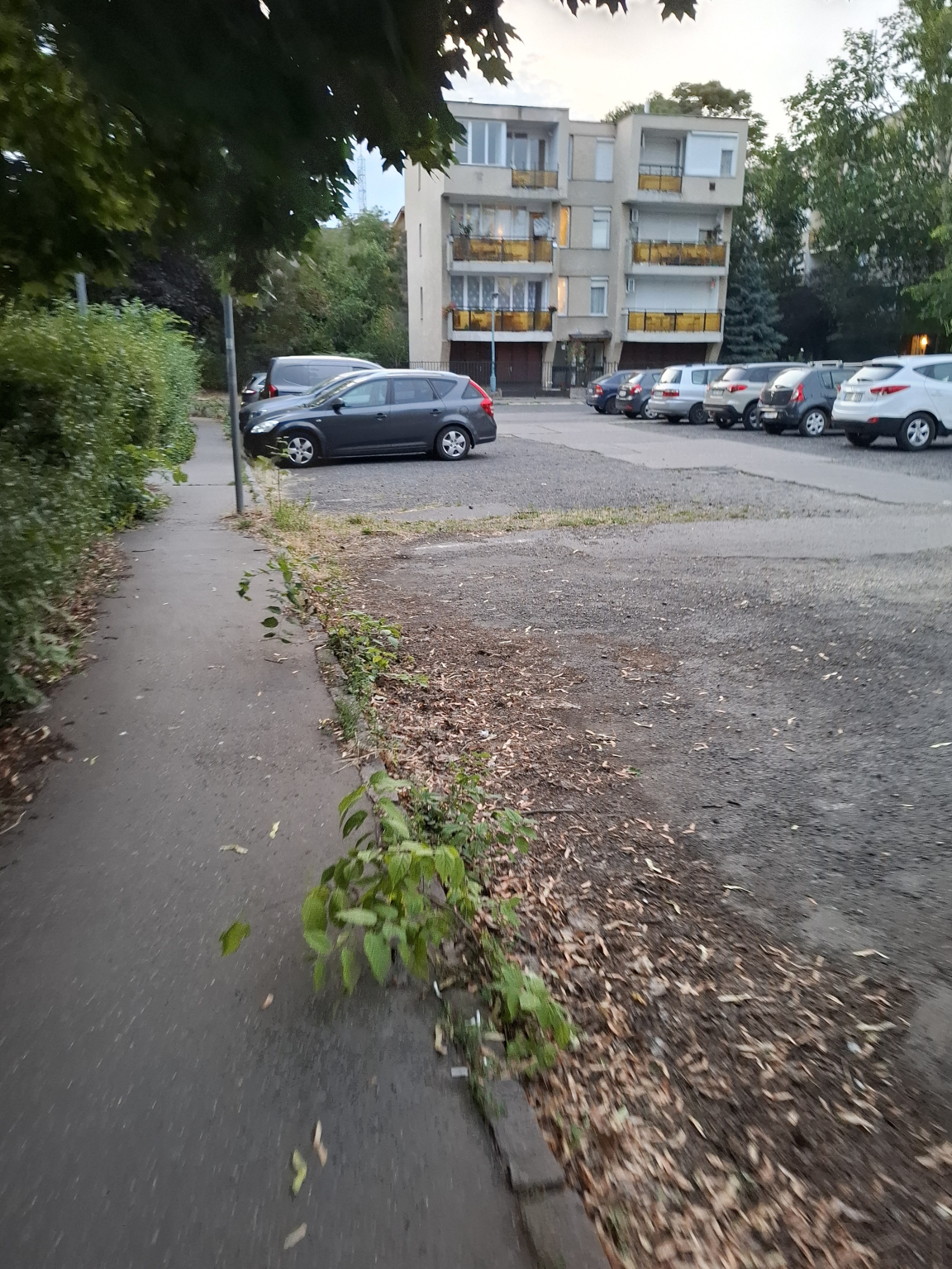 A Táborhegy utcában a házak között a parkoló teli van falevellel, gazzal.