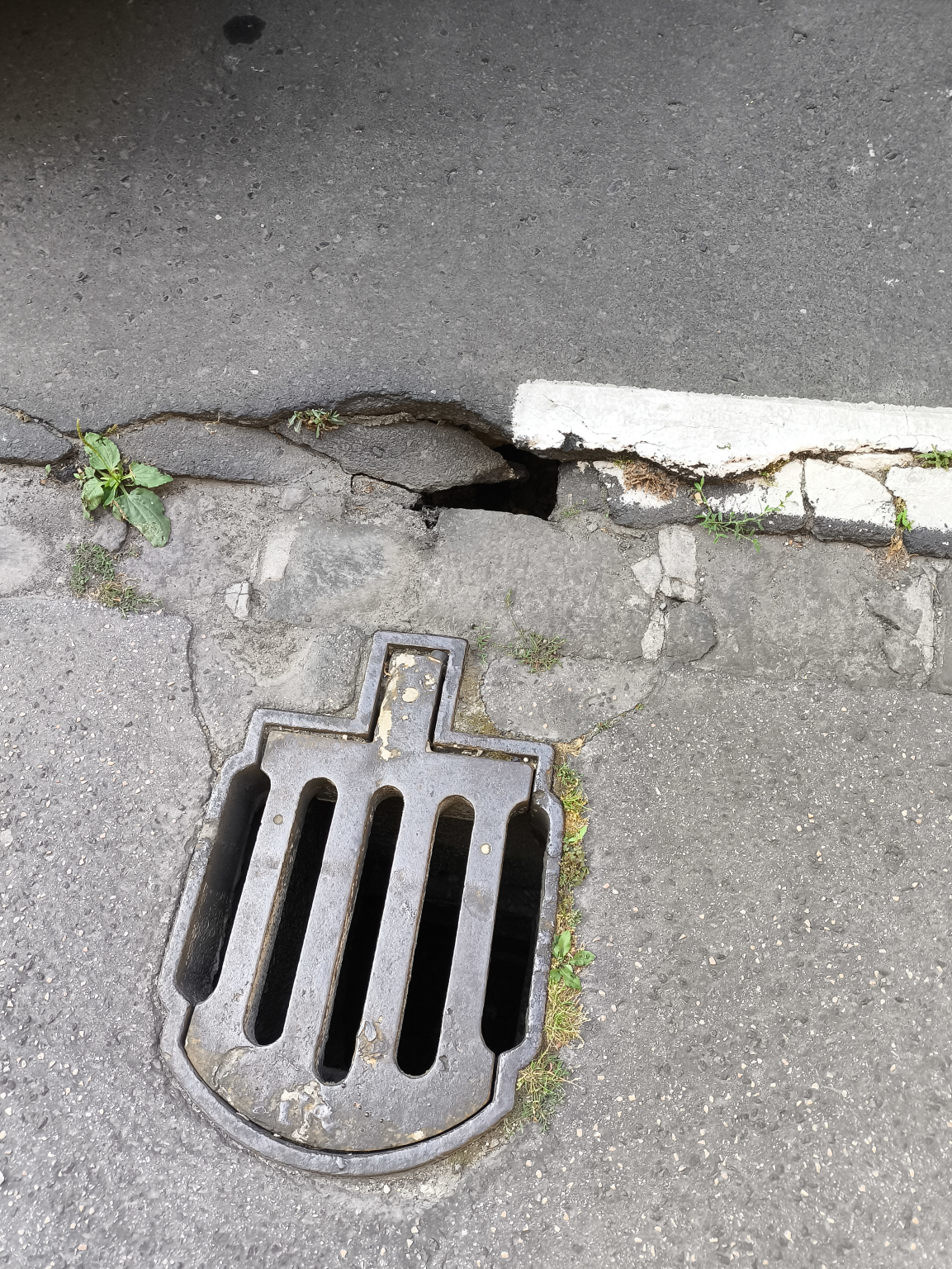 A Budapest, 3. kerületi Matróz utcán, az egyik csatornafedélnél elkezdett beszakadni az út.