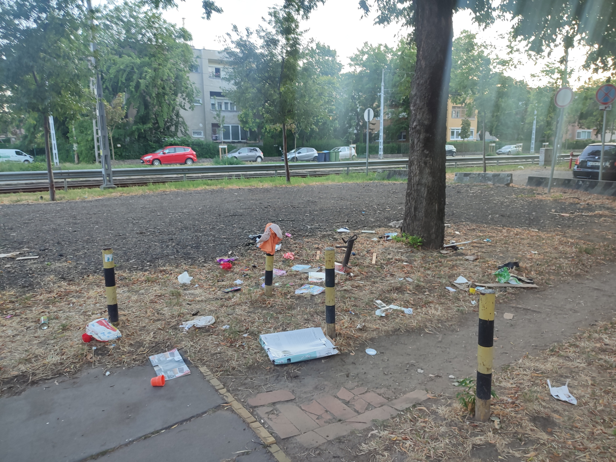 Nagy Lajos király útja 21. és 23. között csupa szemét a murvás parkoló. A takarítást előre is köszönöm.