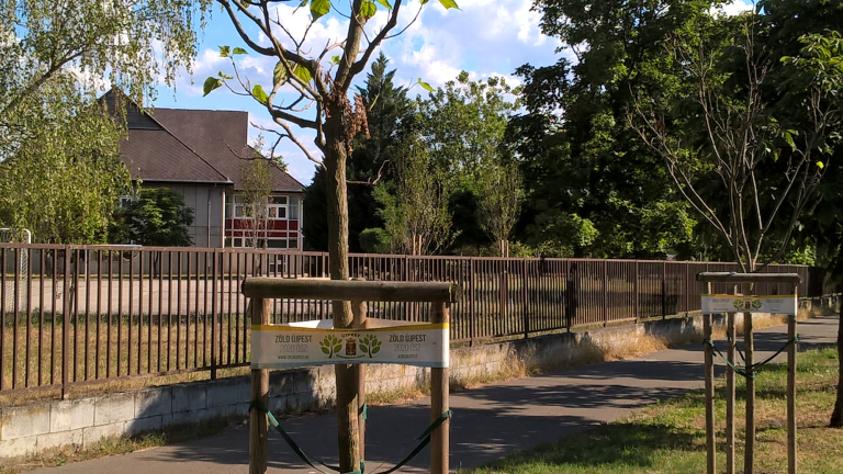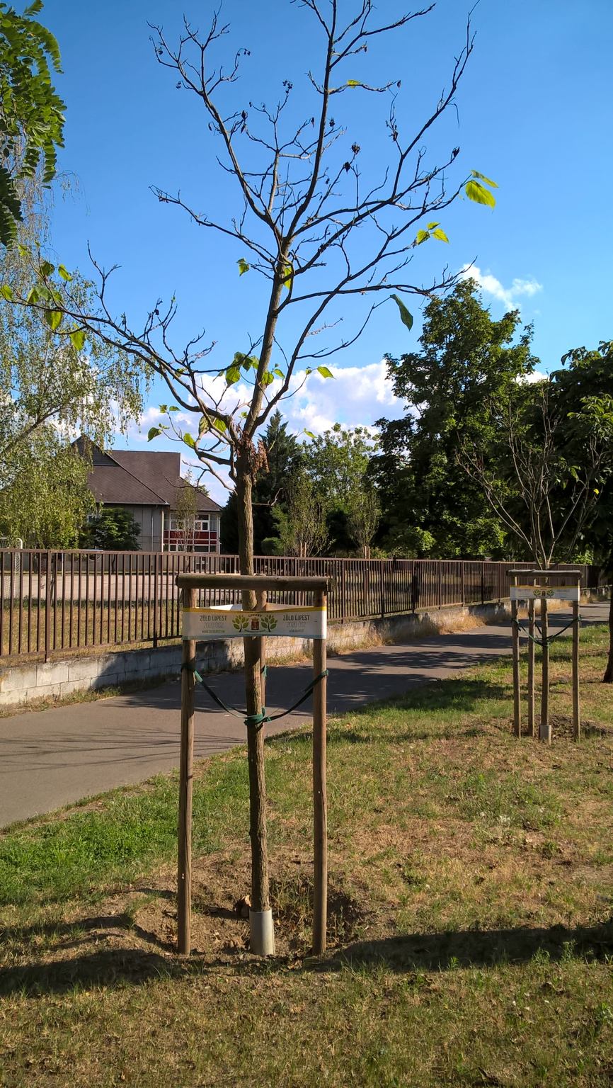 Szomjaznak a szivarfák a Babits Mihály Gimnázium mellett a Farkaserdő utcánál.