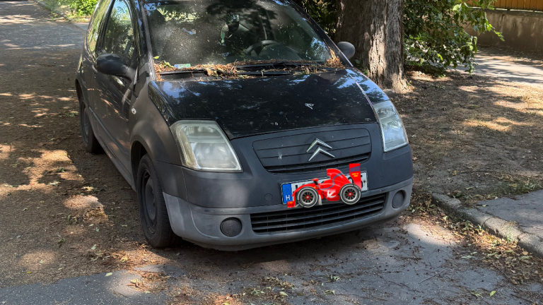 Eddig máshol rohadt most 1-2 honapja végső nyughelyére talált itt a kis zsákutcában, ahol a lakoknak amúgy is keves helyük van parkolni…