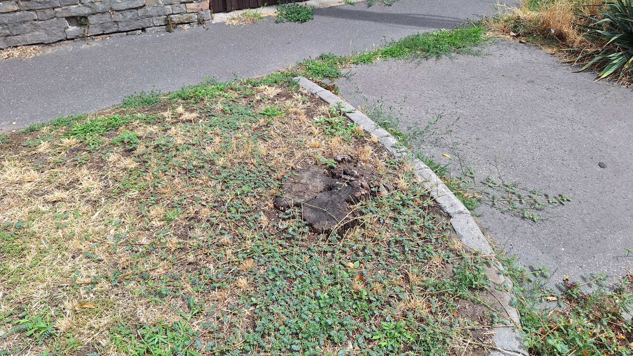 A Szent Imre herceg utca 63. előtt van egy régi fatuskó.