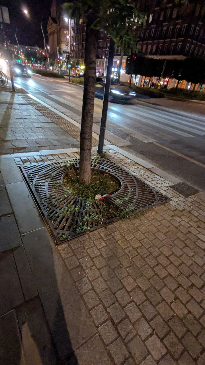 A fa körüli rács elmozdult. Könnyen megbotolhat rajta valaki – kérem, állítsák vissza a helyére.