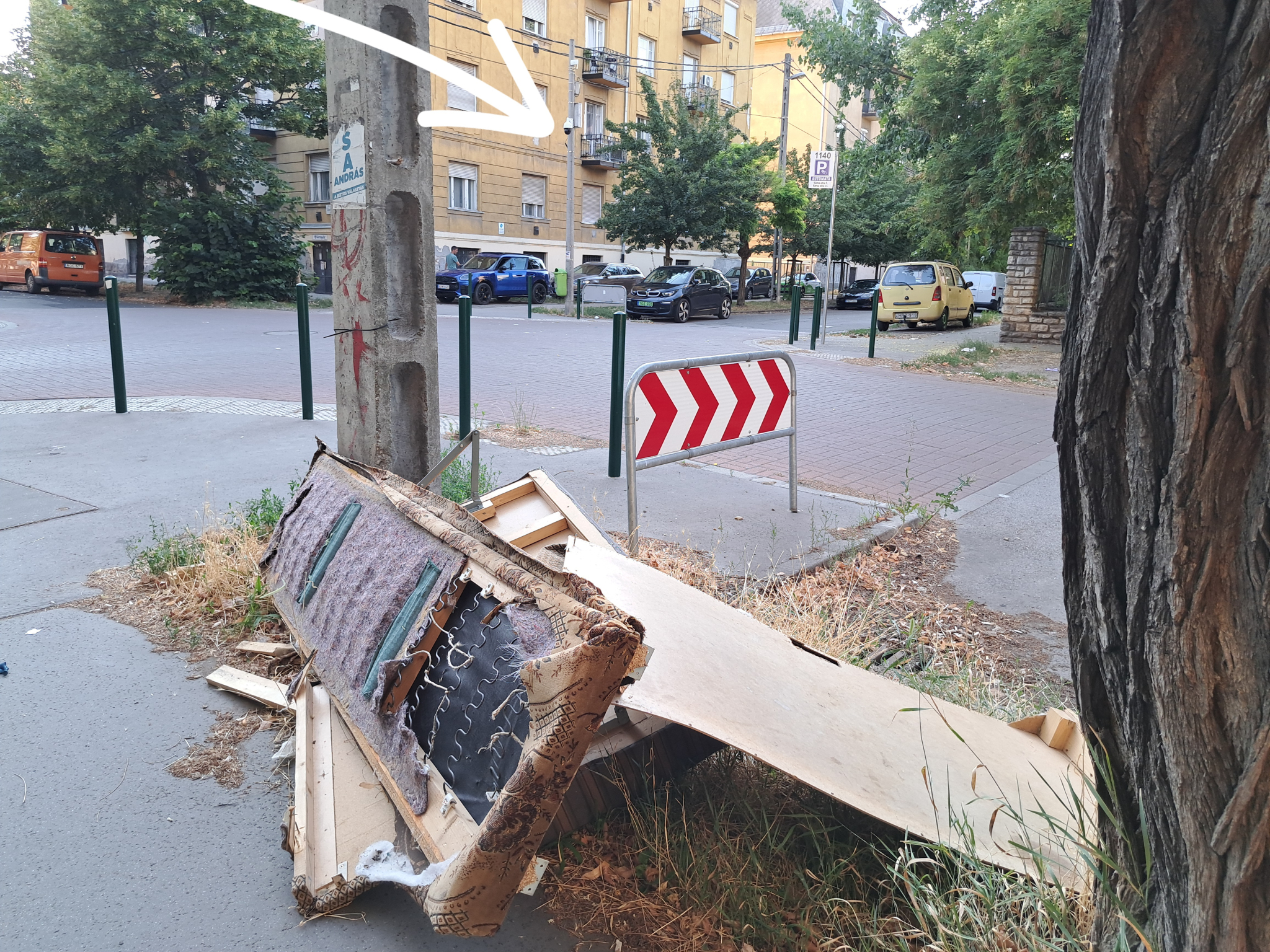 Várna utca és a tábornok sarkán egy kidobott kanapé. Érdemes lenne a térfigyelő kamera felvételét ellenőrizni néha, ha már premier planban figyelhette végig, ahogy valakik lerakták a lomot az utcára. Ha jól láttam még mozog is a kamera, ezért feltételezem, hogy működik.