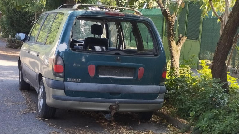 Rendszám nélkül törött autó roncs hónapok óta várakozik