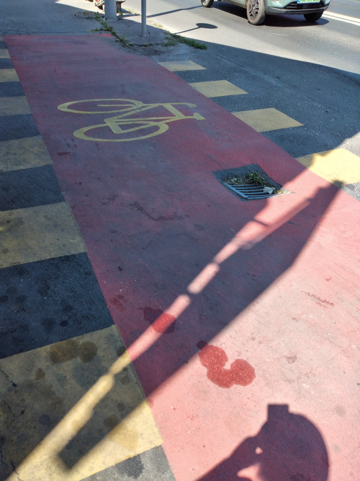 A nemrégiben pirossal felülfestett kerékpárút szakaszon belül a vízelvezető csatornafedél felemelése, szintbe hozása nem történt meg. Bejelentésemmel vártam több, mint egy hónapot, hátha a veszélyes lyuk rendbetétele a két érintett cég együttműködésében megtörténik. Sajnos nem, ezért kérem a csatornarács szintbe és vízszintbe emelését, hogy kerékpárral akadálytalanul át lehessen haladni rajta. Köszönöm.