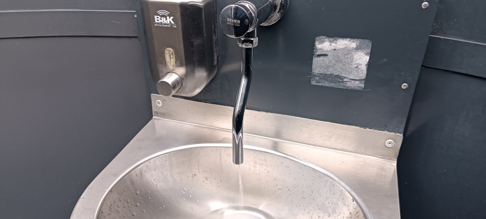 A nagyon szuper Szilas Aktív park ingyenes WC kézmosó csapjából egy ideje rettentő erősen és mindenfelé spriccelve folyik a víz. A gomb megnyomásával gyakorlatilag eláztatja magát bárki, aki megnyomta. A kültéri kútnál pedig csak csordogáló víz van, az is a kútfejhez túl közel folydogál, nem fél alá semmi (még a kézfej sem).