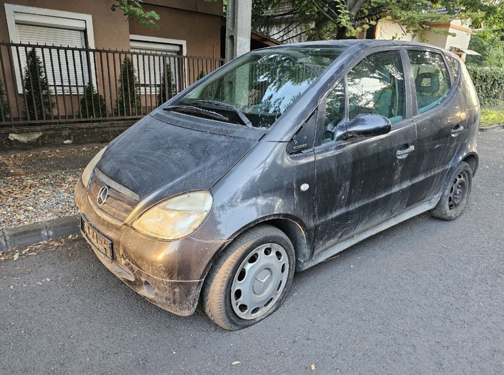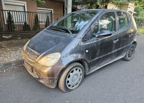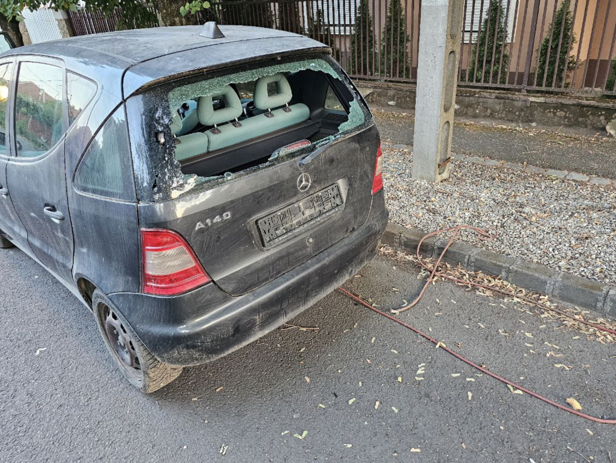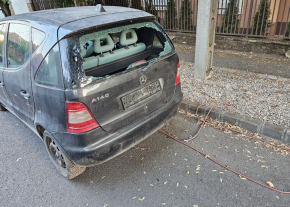Elhagyottnak tűnő jármű, leeresztett kerekkel, betört üveggel