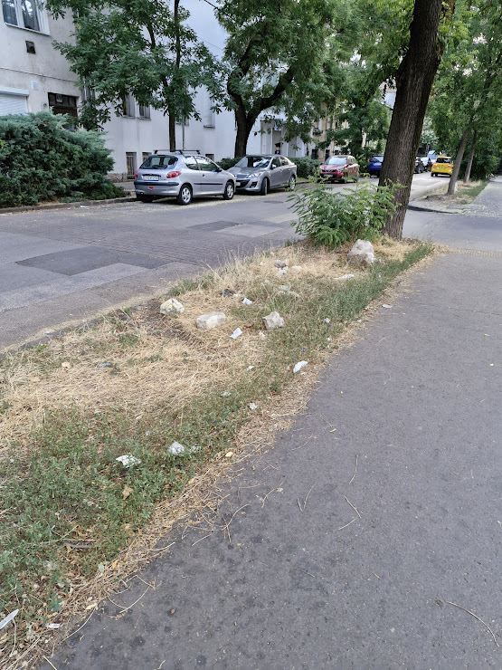 A Szugló utcai ALDI áruház Kövér Lajos utcai frontja egyre rusnyább. Szemetes, gondozatlan. A műsziklákat széttörték és a járdához közel gördítették, hogy még oda is fel tudjanak parkolni. Kérem tájékoztassák az áruházat, hogy a járdán túl, az útpadkáig IS a tulajdonos felelőssége a takarítás.