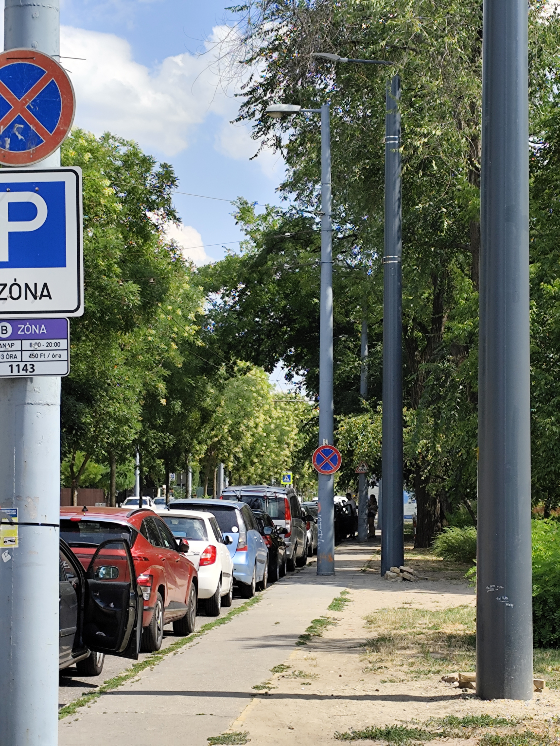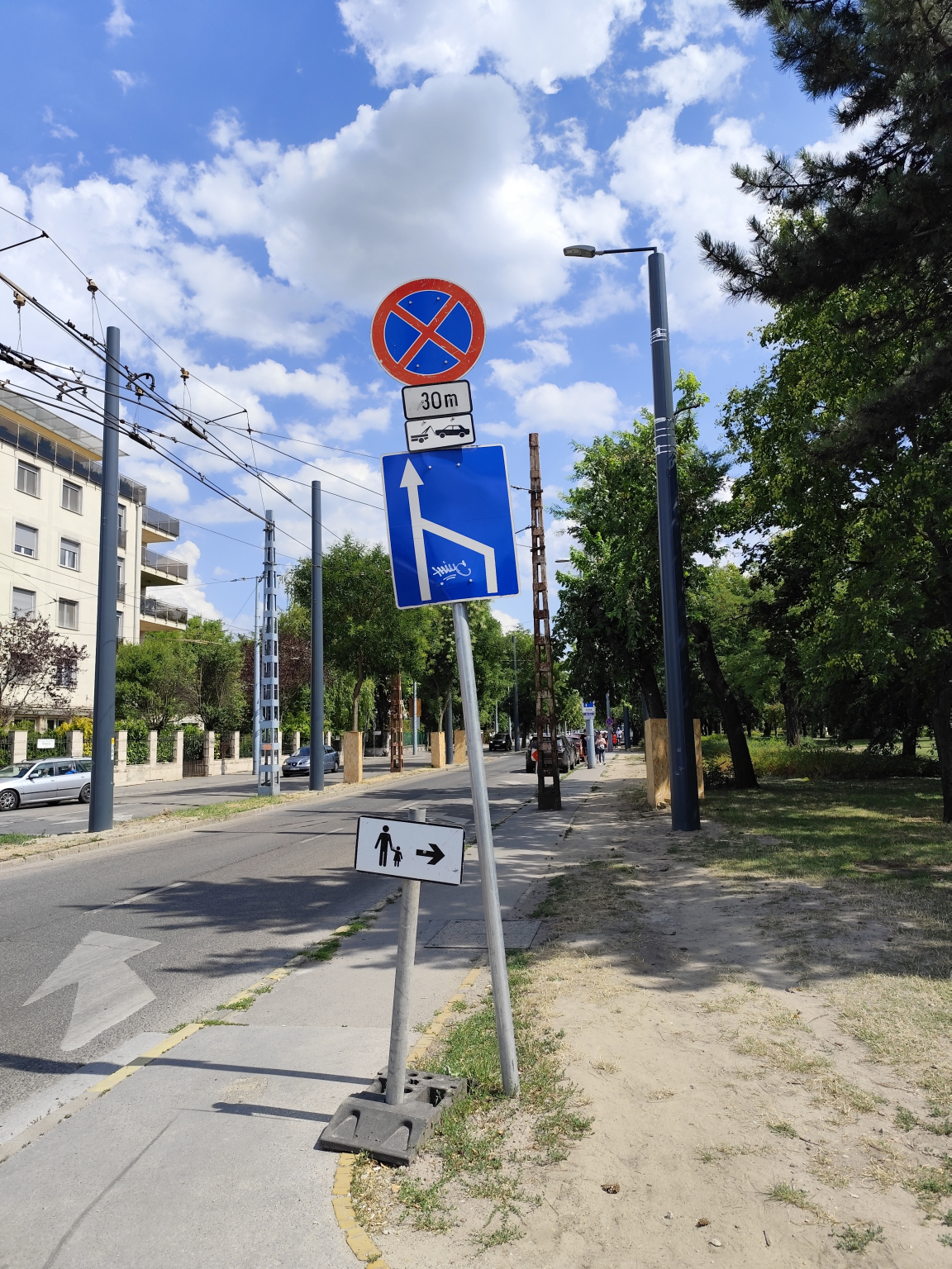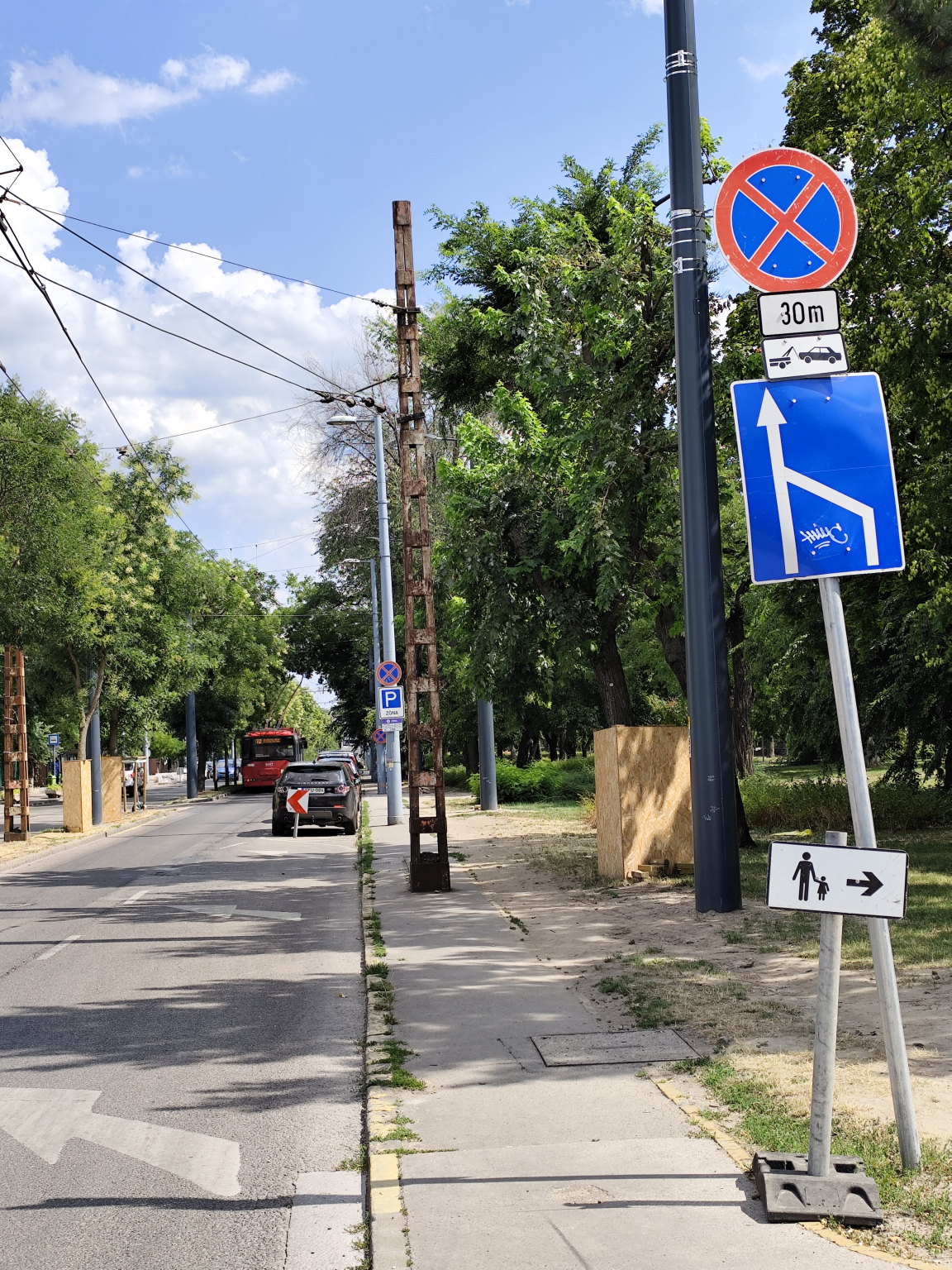 A bejelentésben szereplő „Megállni tilos” jelzőtáblák a trolibusz felsővezeték építéséhez tartozó ideiglenes forgalmi rendjéhez tartoznak.