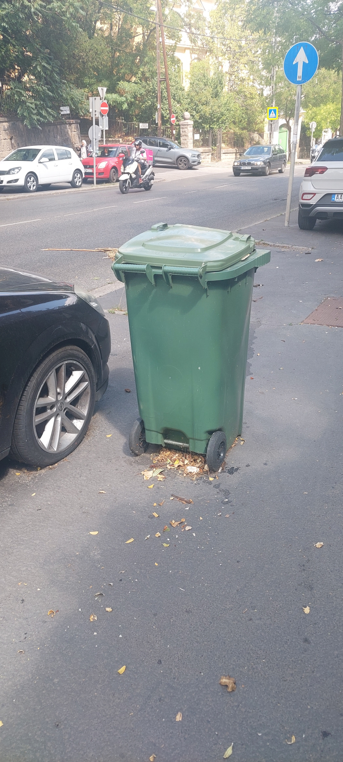 Hónapok óta a járdán sodródik egy kuka. Tele van, de a MOHU nem viszi el a szemetet.