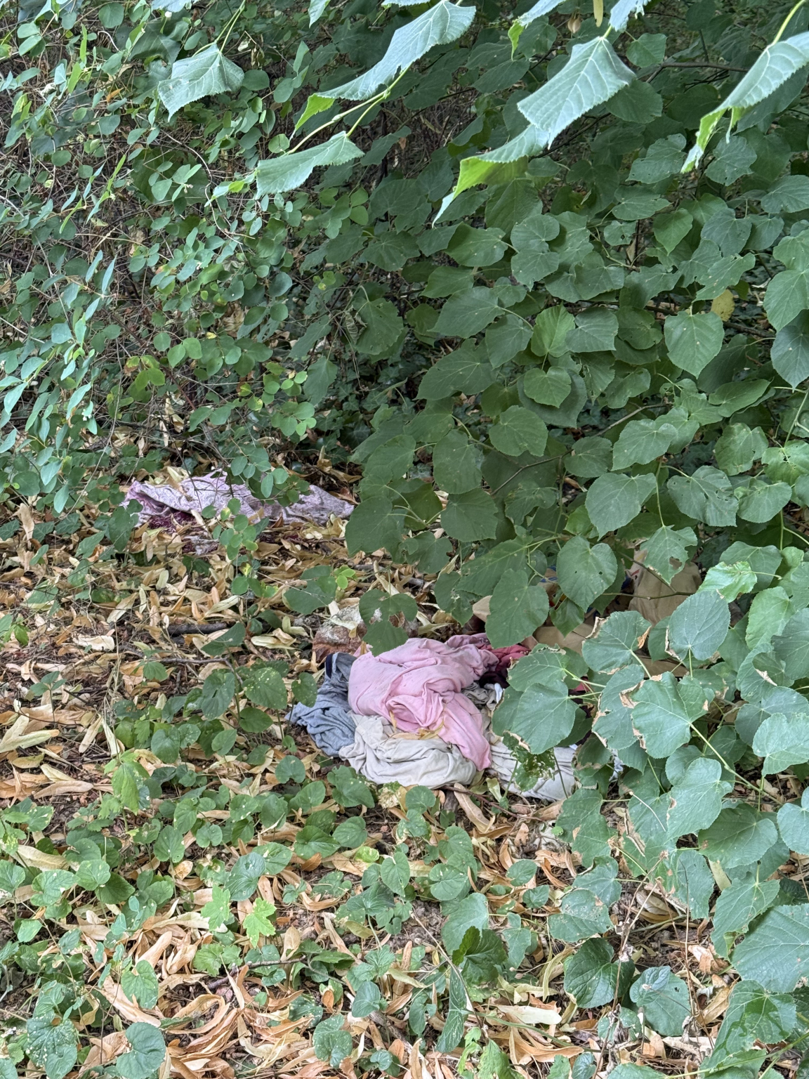 A 2/A -ban a Templom kertben a plébániához vezető járda mellett a bokorban kenyér, ruhák szétdobálva a bokor alatt.