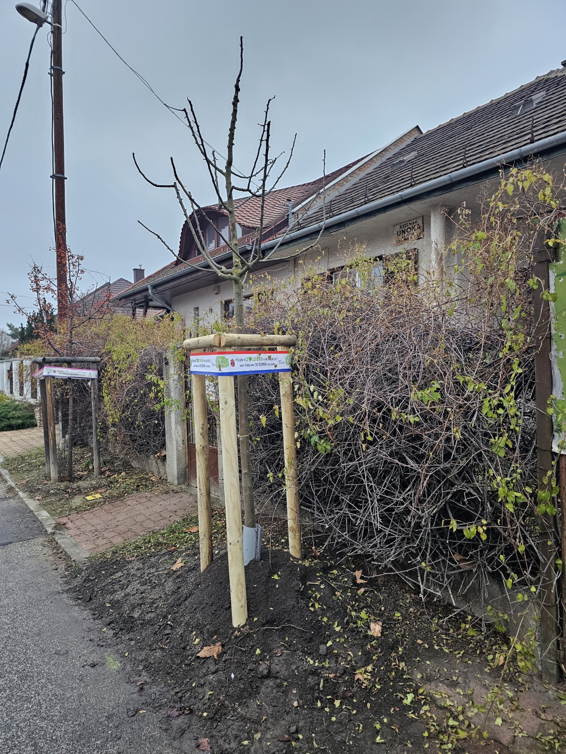 13. kerület, Unoka utcában a 41. és 45. szám elötti, pár éve az önkormányzat által ültetett fák kiszáradtak.