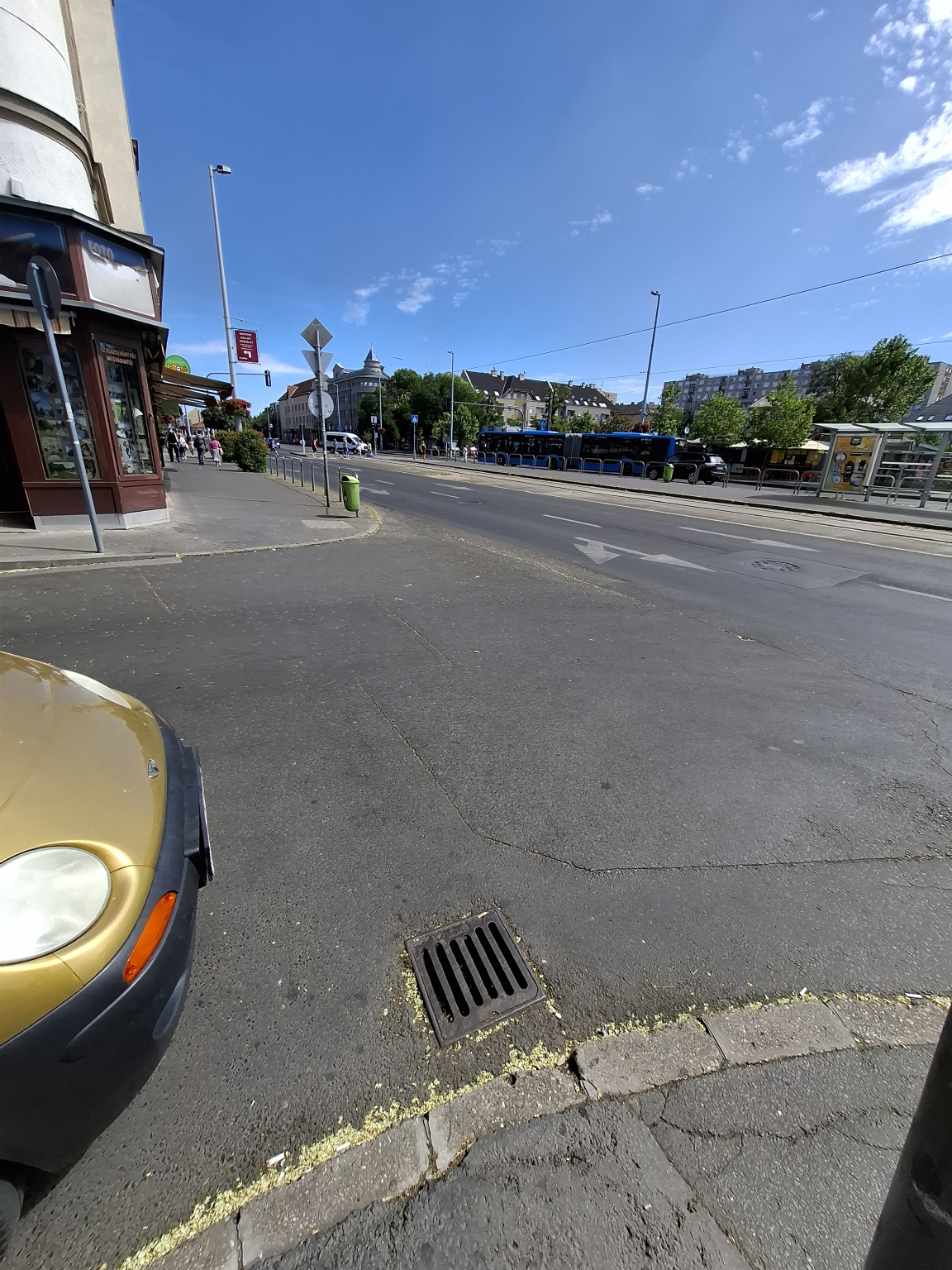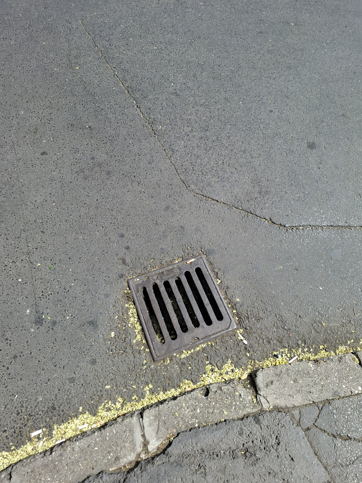 A József Attila és István út kereszteződésében a víznyelőben sok a föld, zöldhulladék.