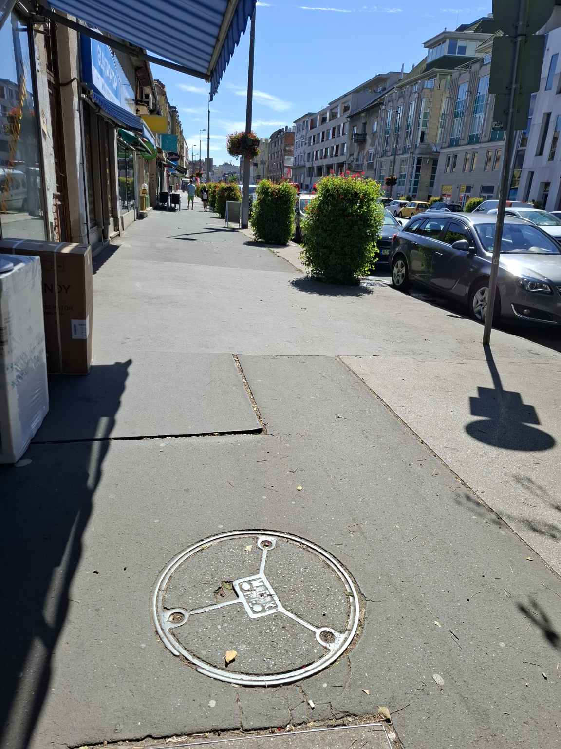 Üzlet bejárata előtt hiányos az aknafedél kitöltőanyaga. Kérem javítsák!