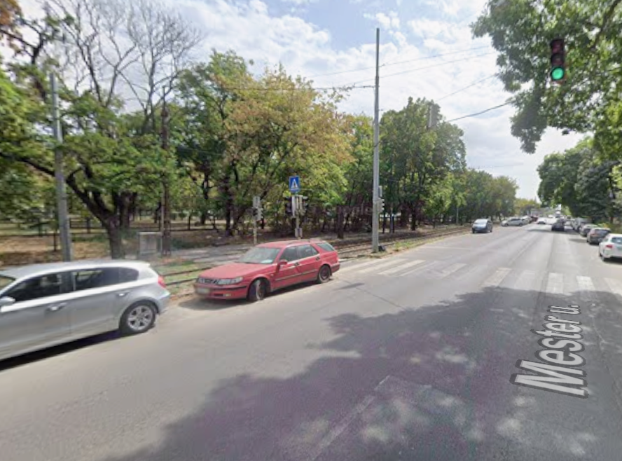 A jármű a Mester utca és a Tóth Kálmán utca kereszteződésénél, közvetlenül a gyalogátkelőnél áll