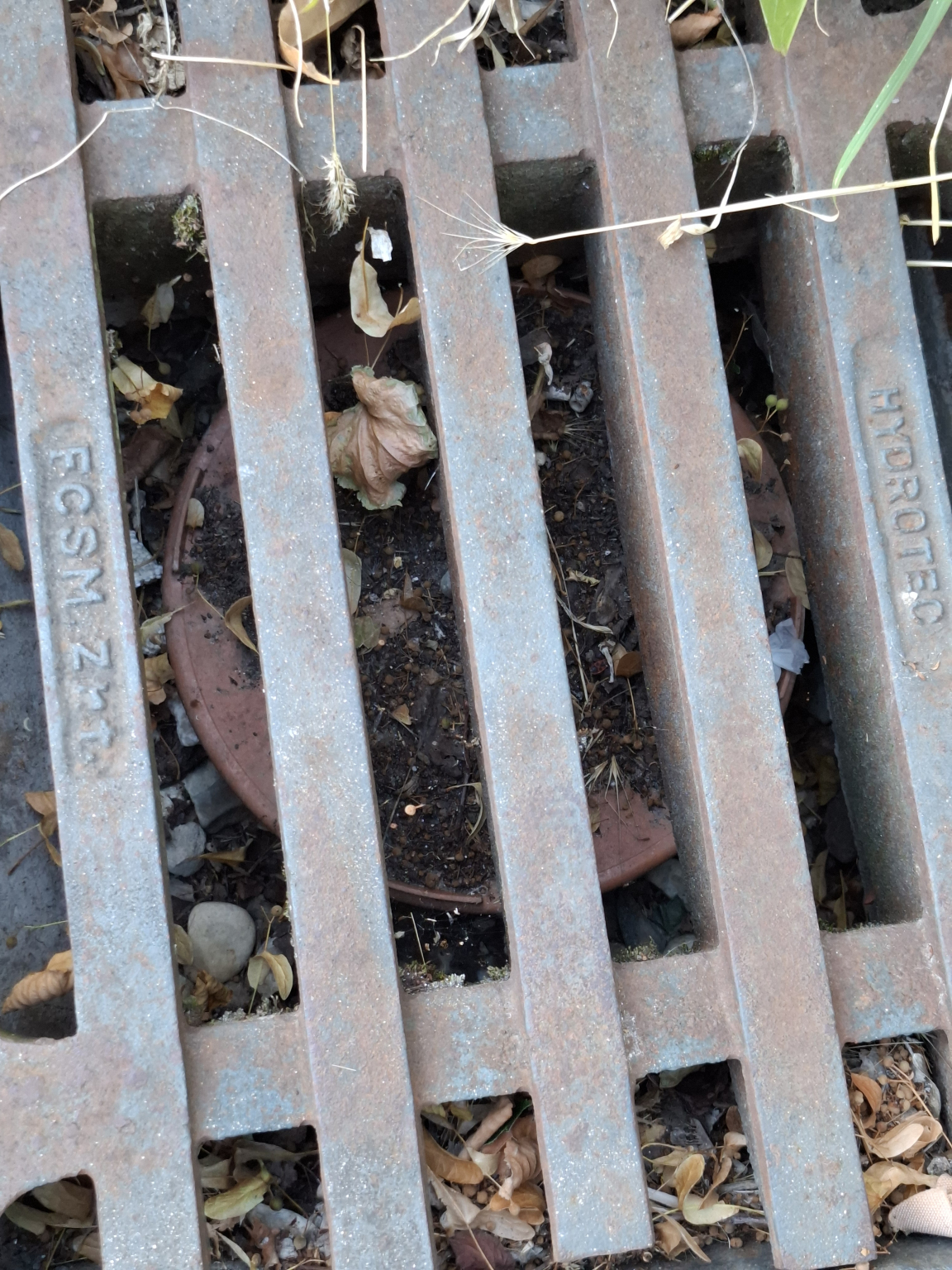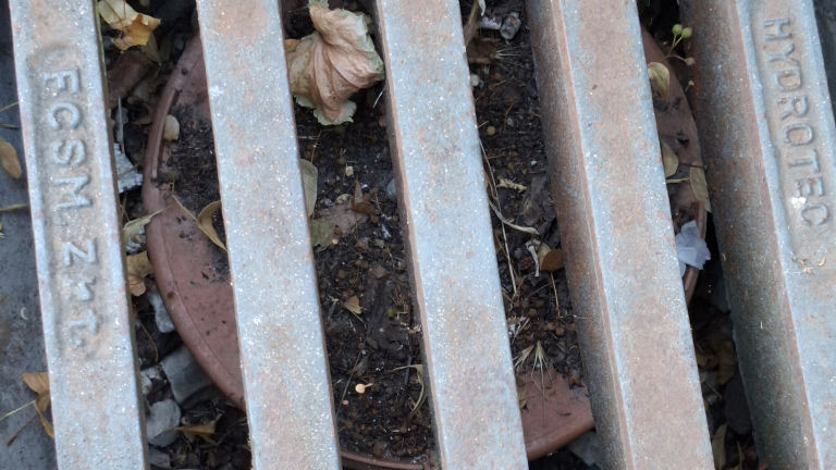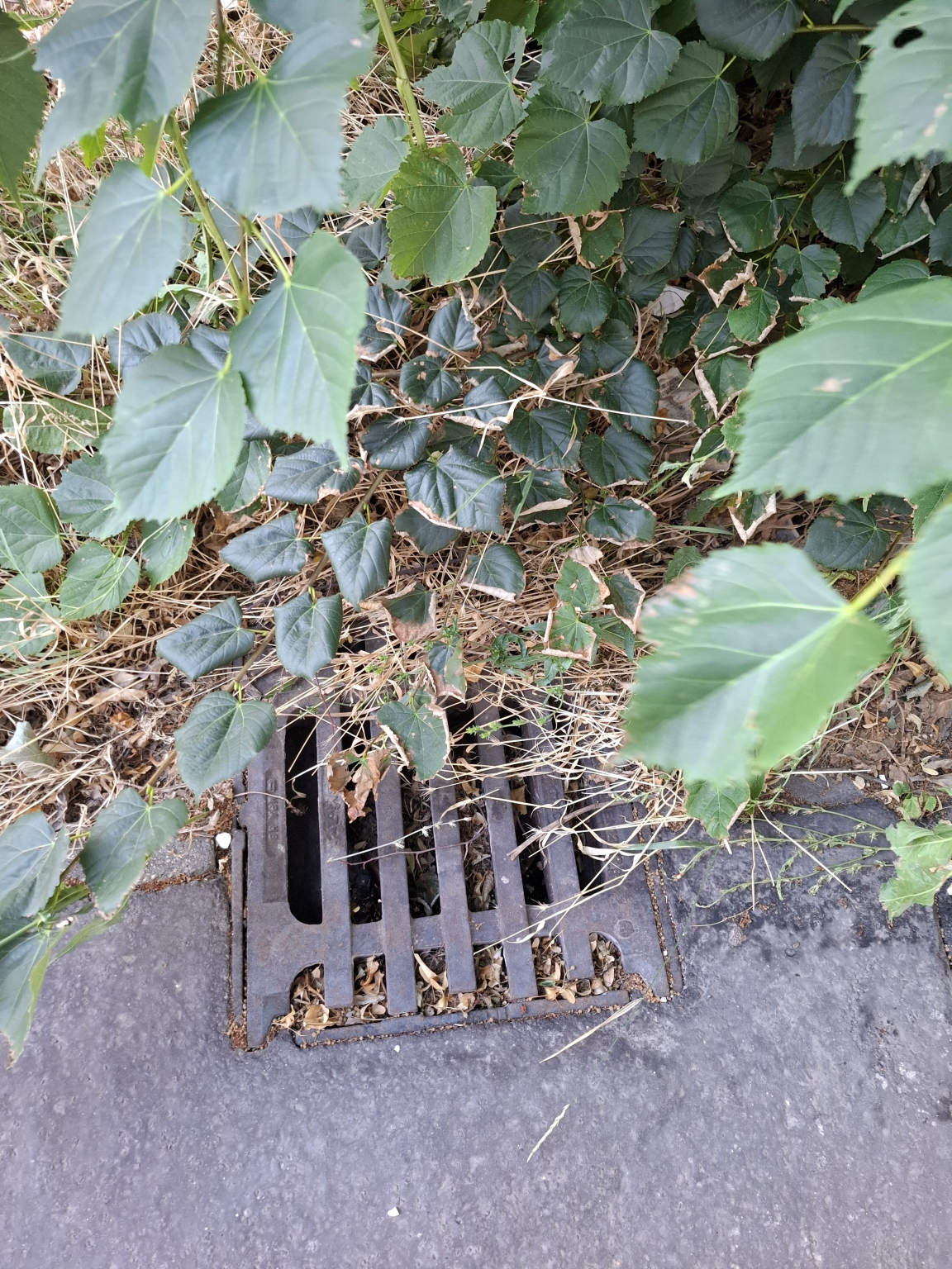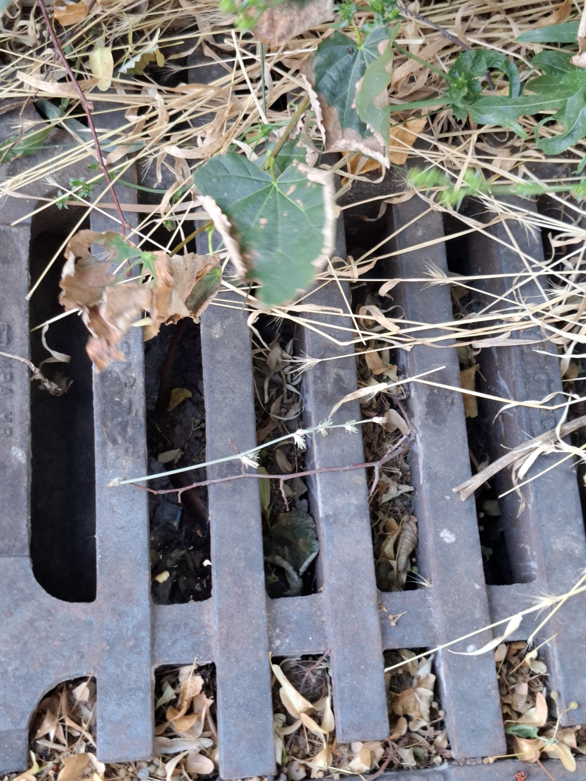 A Borszéki utcában a járda mentén az FCSM-es két egymás mellett lévő víznyelőben sok falevél van.