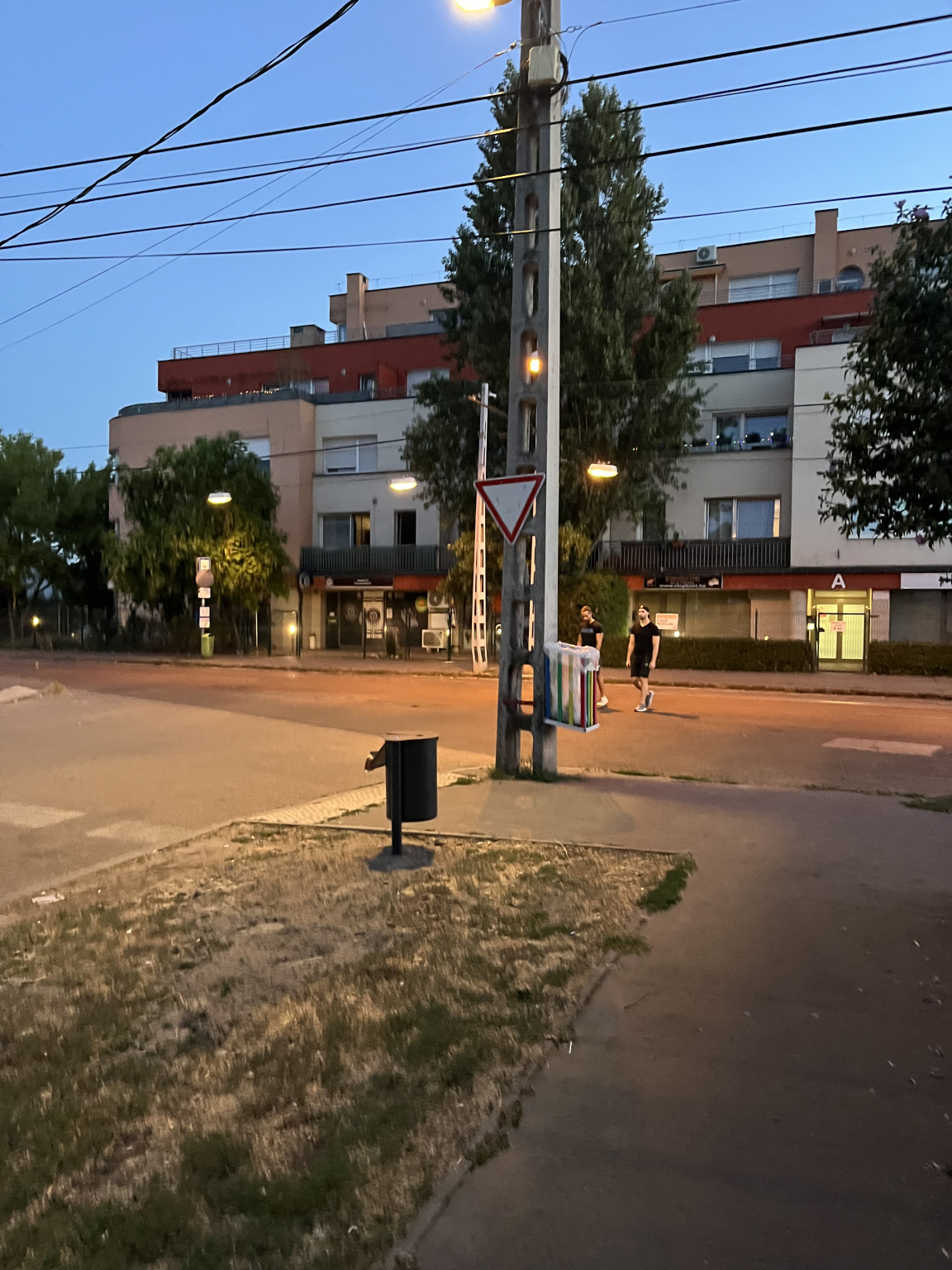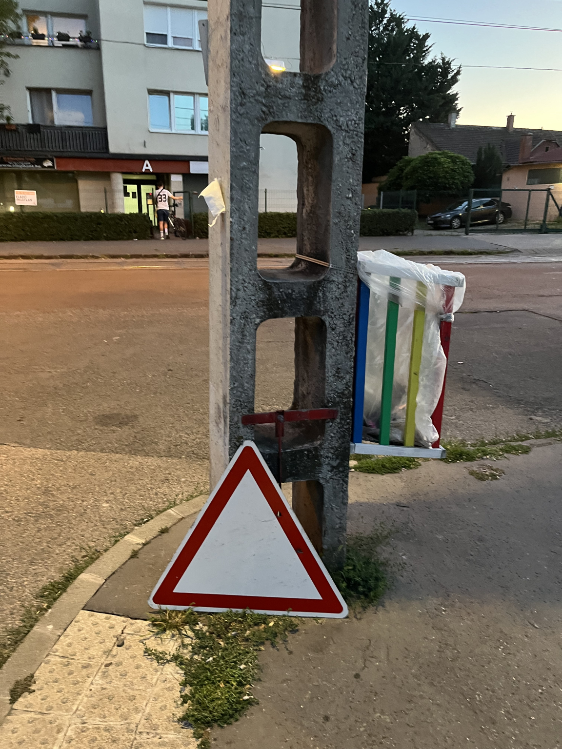 Kereszteződésbe ismeretlen okból leesett az elsőbbségadást jelző tábla.