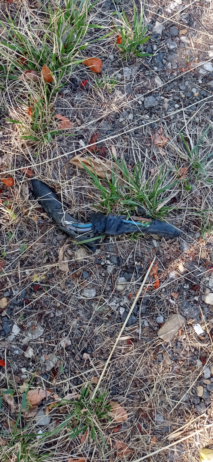 Földből kilógó, hiányos szigetelésű áramkábel!