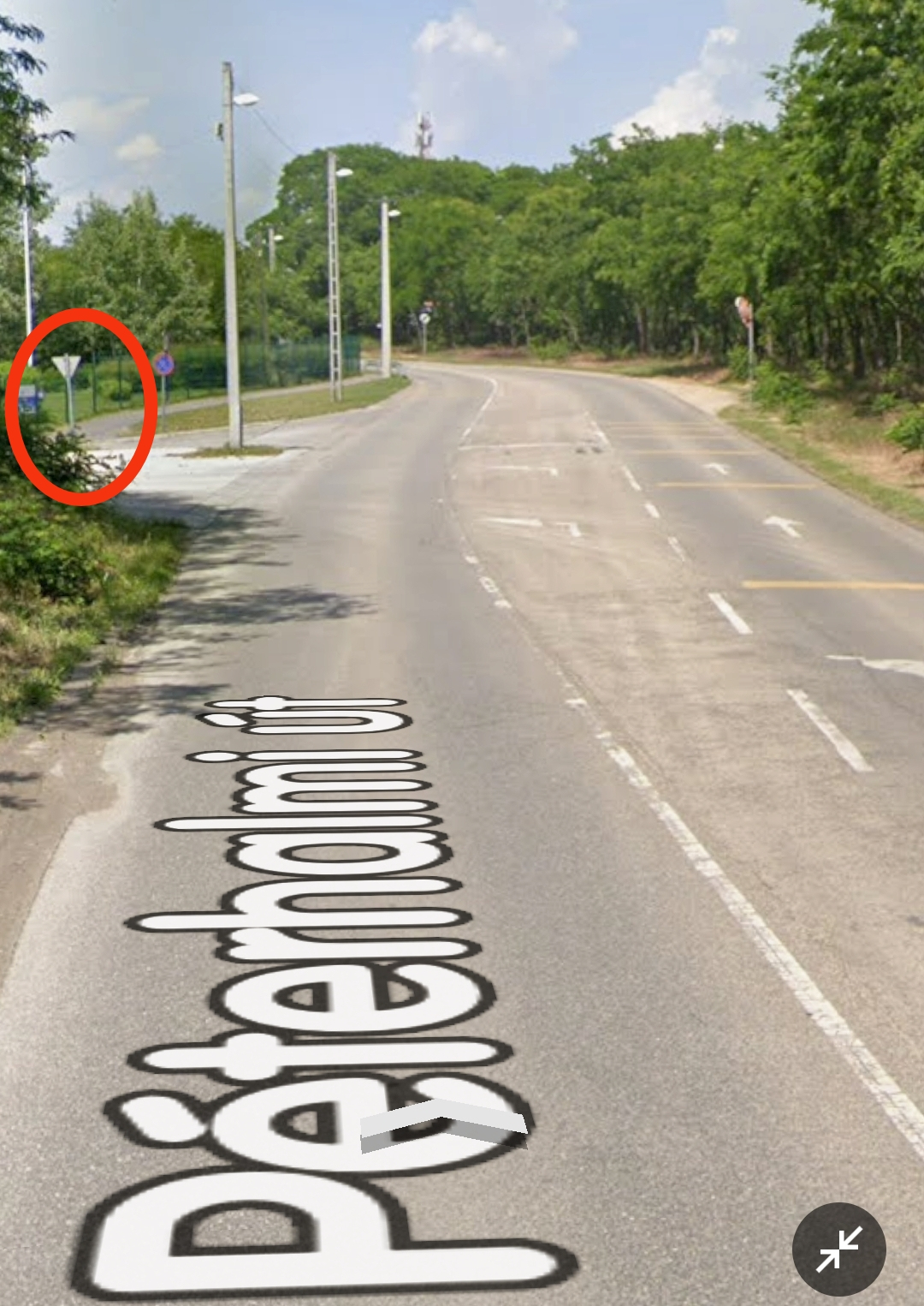 Péterhalmi úton haladva a Gilice tér felé 40-es sebességkorlátozás található. Majd tovább haladva bal oldalt egy elsőbbségadás tábla található ami az sugallja, hogy egy útkereszteződés mellett haladtunk el, ami feloldja a sebességkorlátozást. Viszont pár méter múlva szembe jön velünk egy 40-es sebességkorlátozás végét jelző tábla.