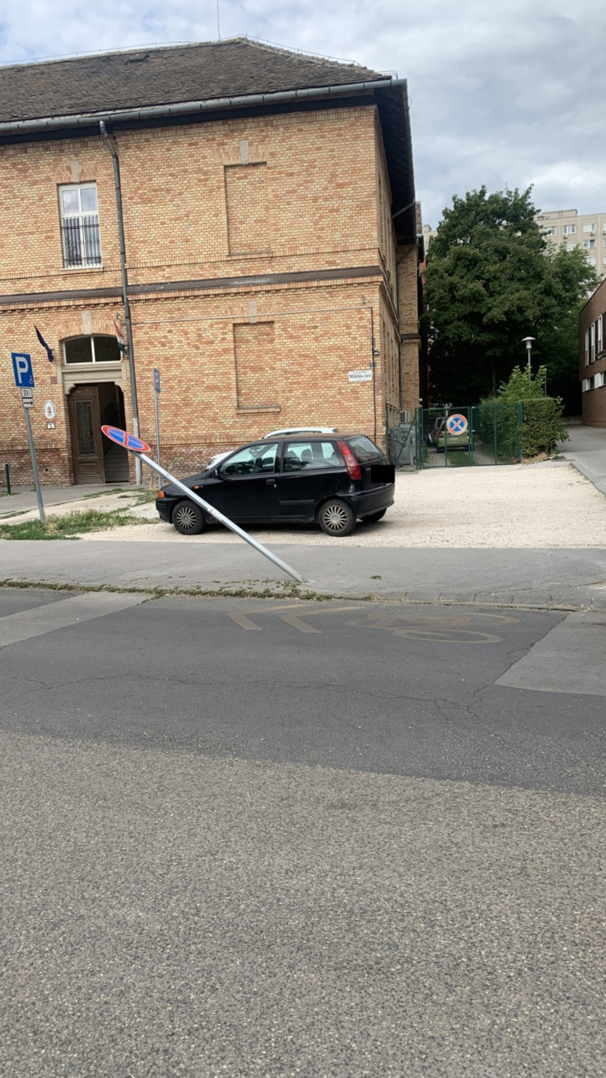 Kérem, állítsák függőlegesbe a megállni tilos táblát a Miklós tér, Miklós utca találkozásánál.