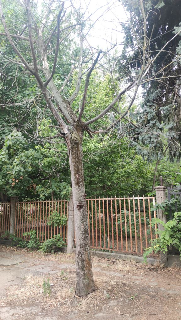 Csillaghegyen, az Aradi utca 1-3 előtt több mint 6 éve áll egy kiszáradt fa. Most már annyira korhad, hogy félő, hogy kidől, illetve száraz ágak is esnek le róla erős szél esetén.