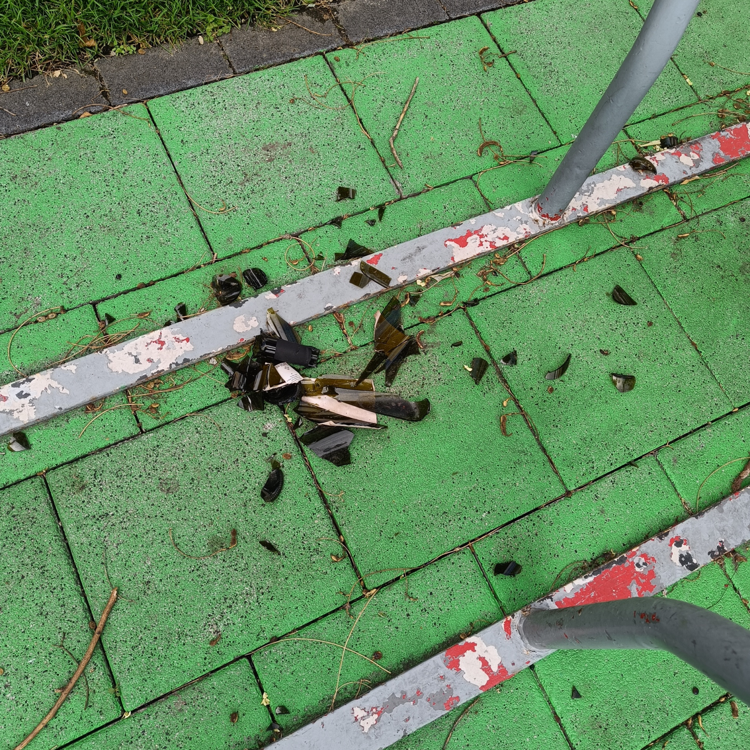 Már lassan két hete van ez a törött palack a Westend irodaház A torony bejárattal szemben. Ebben a szandálos időjárásban balesetveszélyes, illetve nem használható emiatt a mobilitási pont egy része.