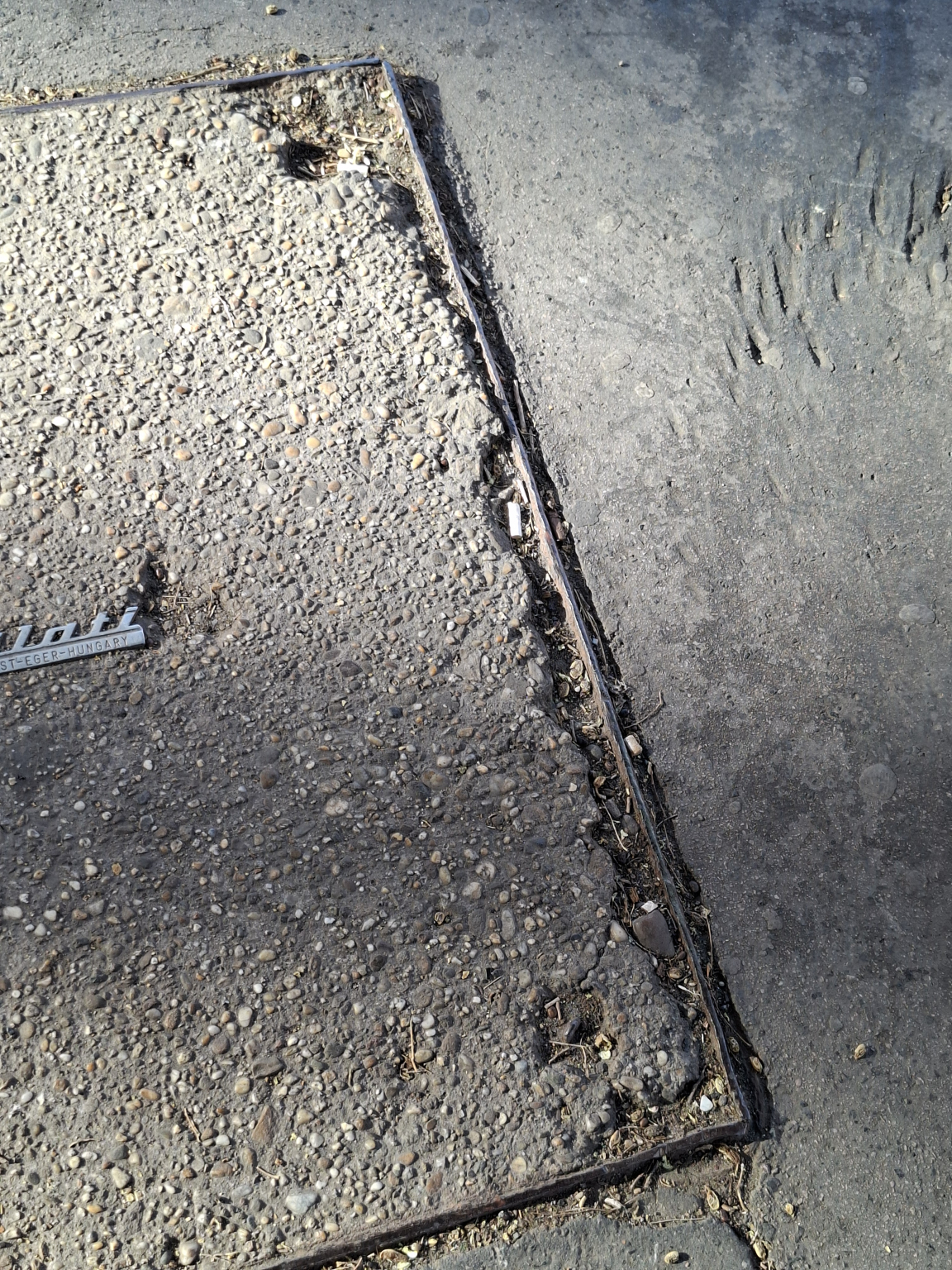 Az aknafedél a szélein megrongálódott.