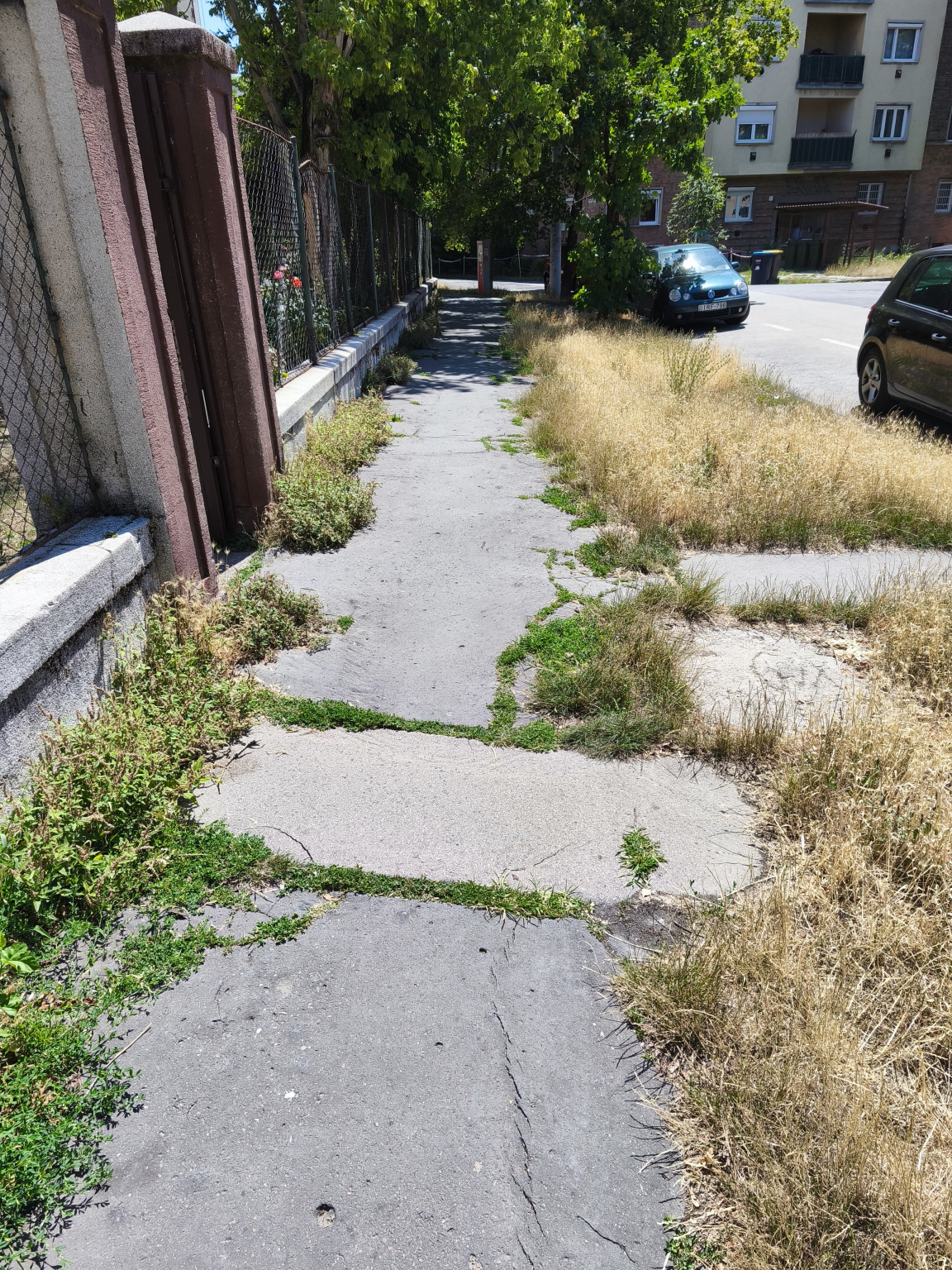 Az elmúlt években olyannyira leromlott a Raktár utcában lévő járda állapota, hogy az utóbbi időben több baleset is történt a rajta keletkezett kátyúk, repedések, egyenletlenségek miatt.